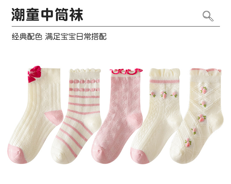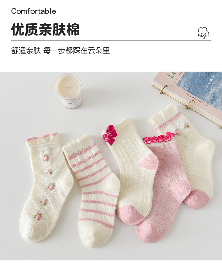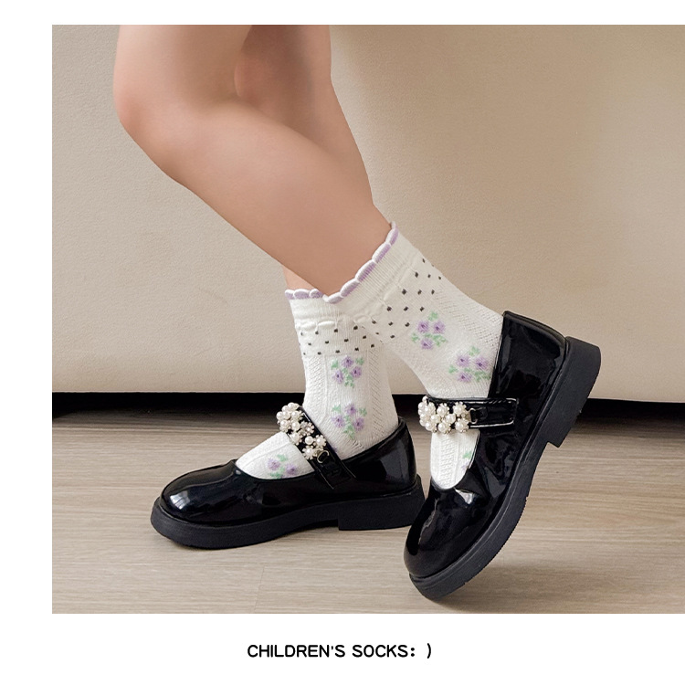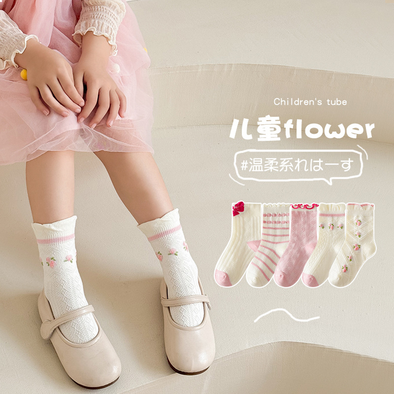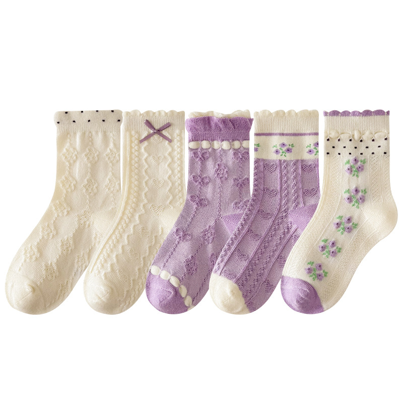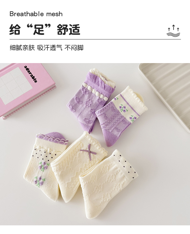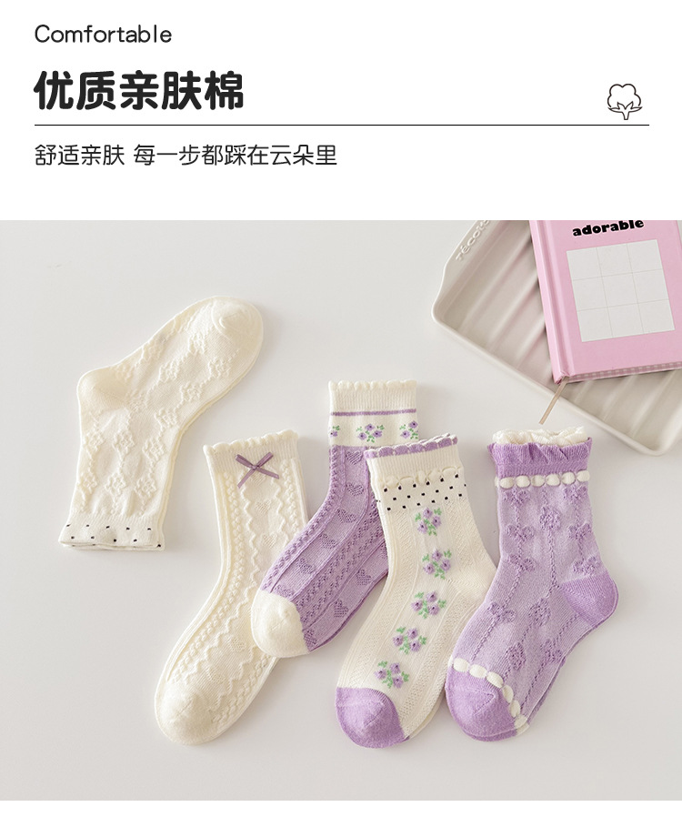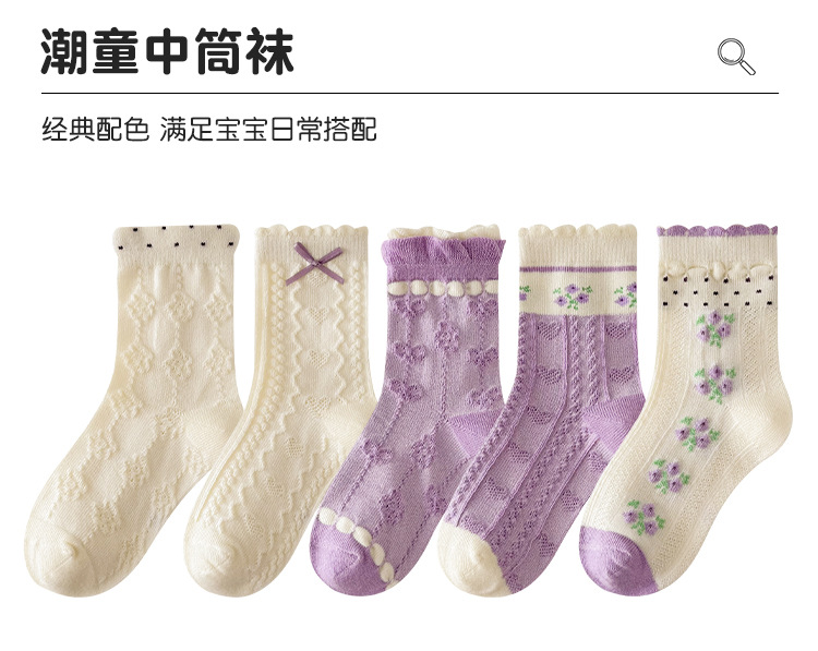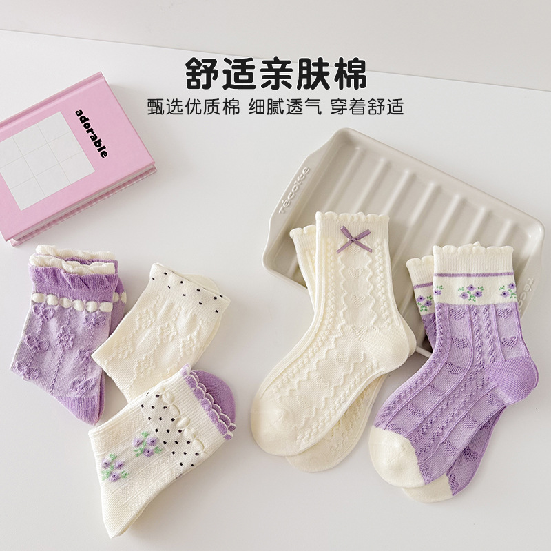 소녀 가을과 겨울 새로운 중간 튜브 양말 핑크 레이스 양말 보라색 달콤한 활 여성 면 어린이 양말 공주 양말스토어 가기