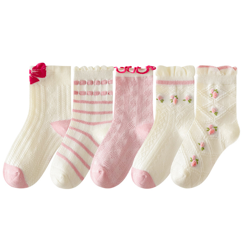 소녀 가을과 겨울 새로운 중간 튜브 양말 핑크 레이스 양말 보라색 달콤한 활 여성 면 어린이 양말 공주 양말