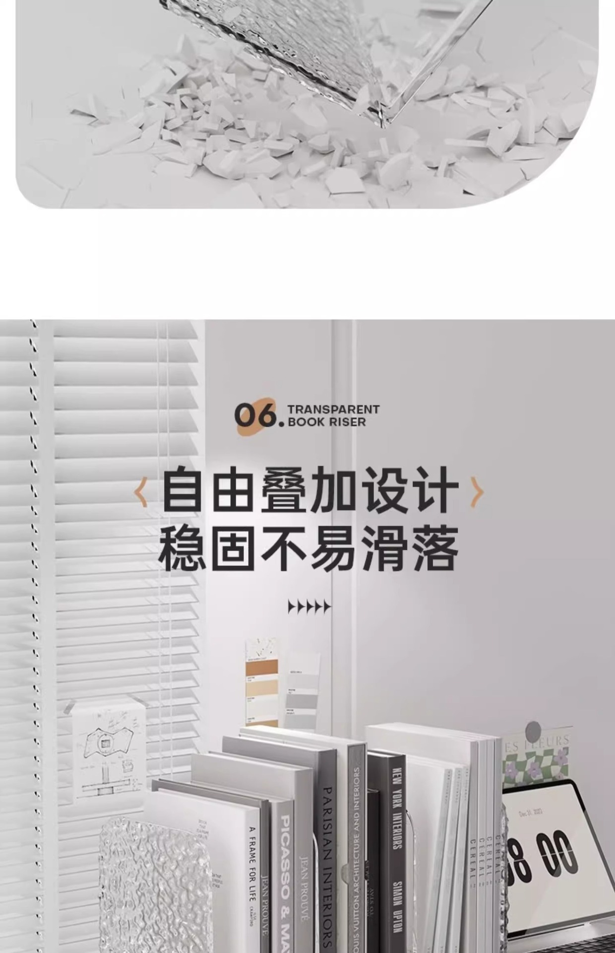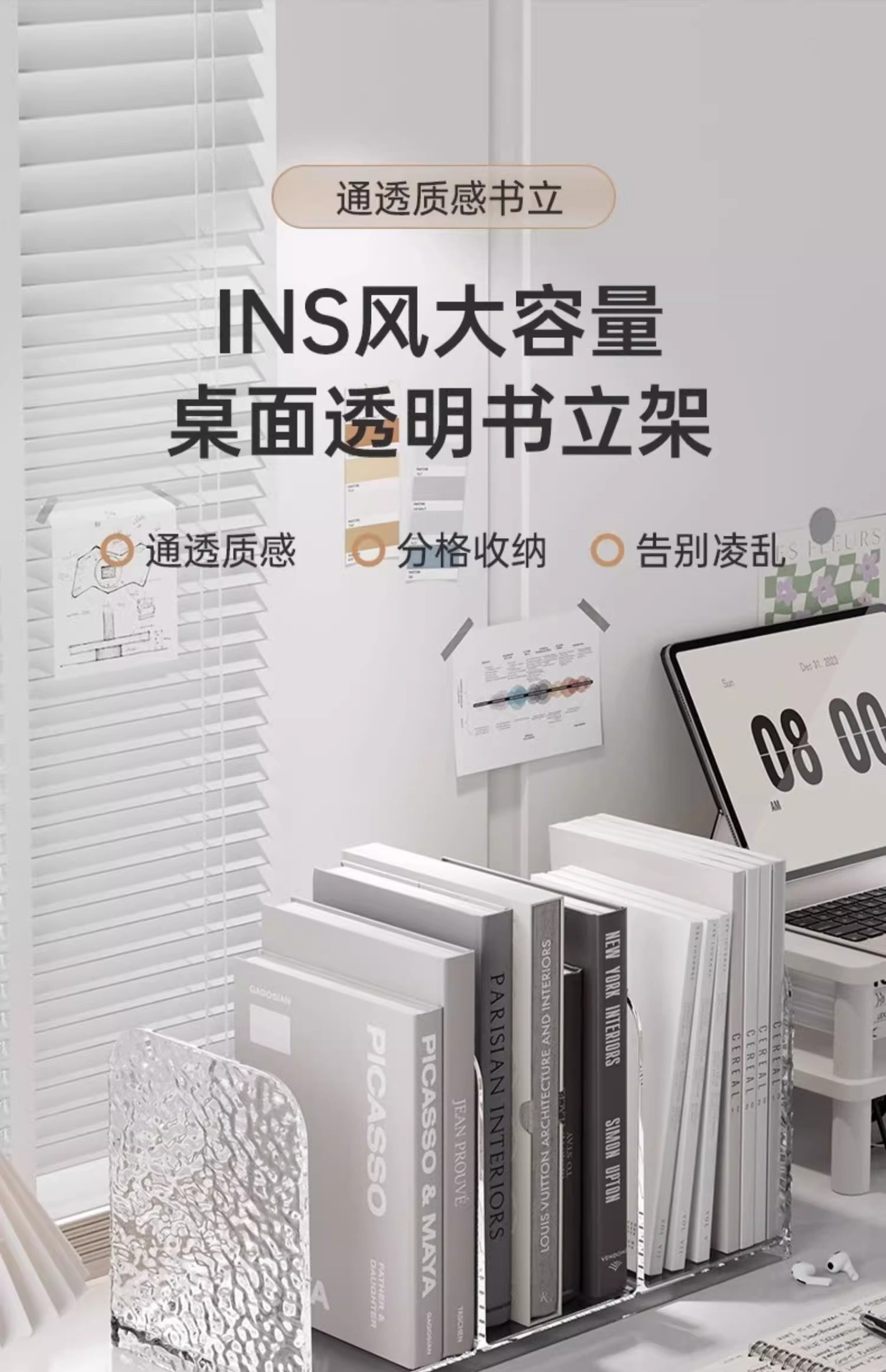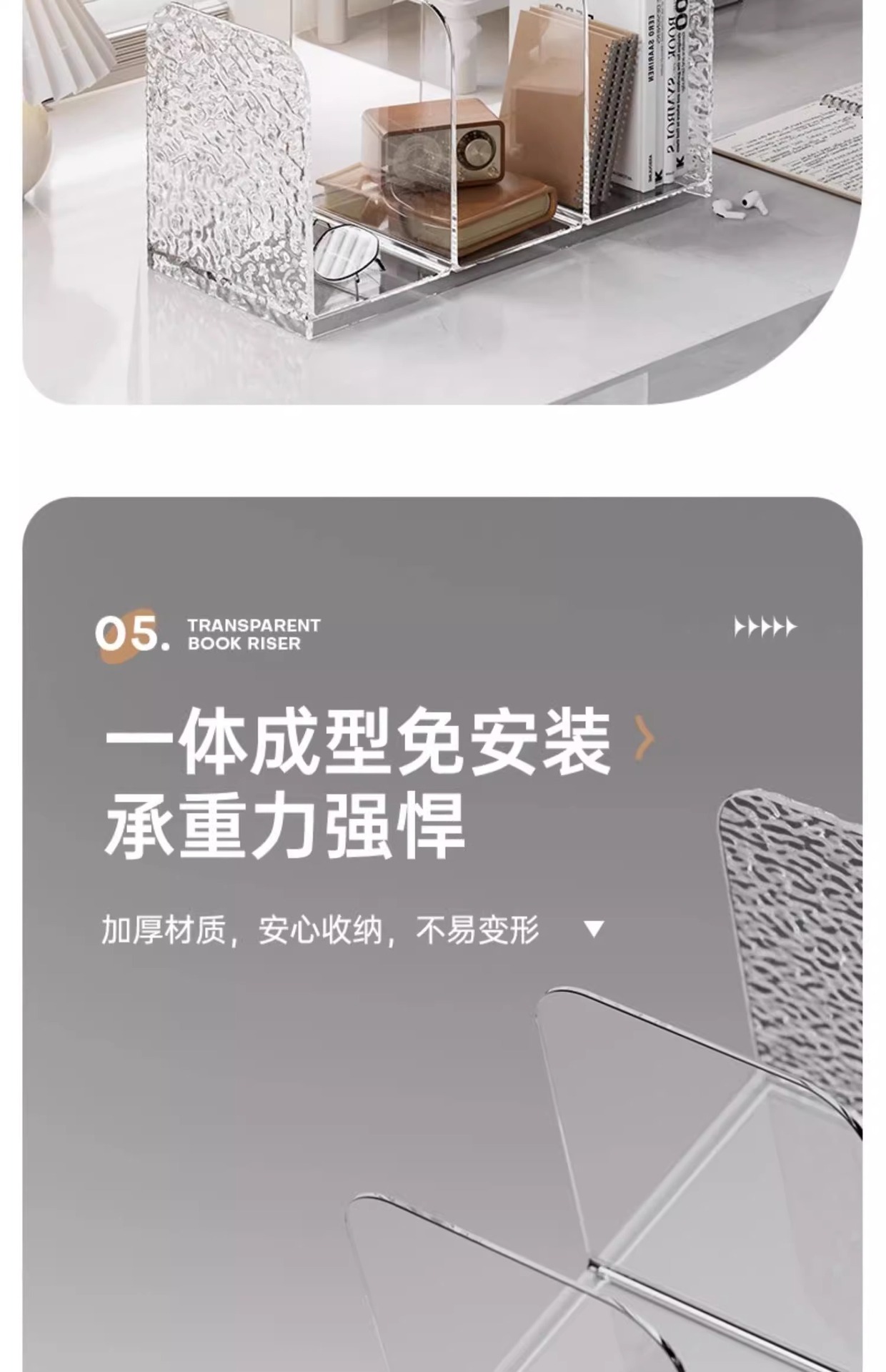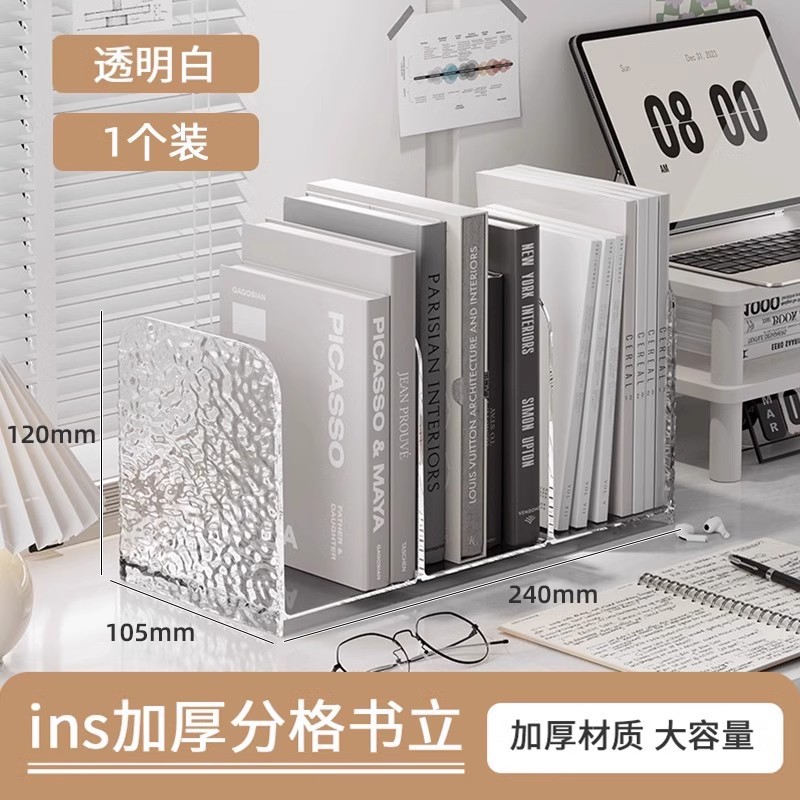 라이트 럭셔리 빙하 패턴 데스크탑 북 스탠드 아크릴 투명 문서 책장 사무실 학생 도서 보관 선반