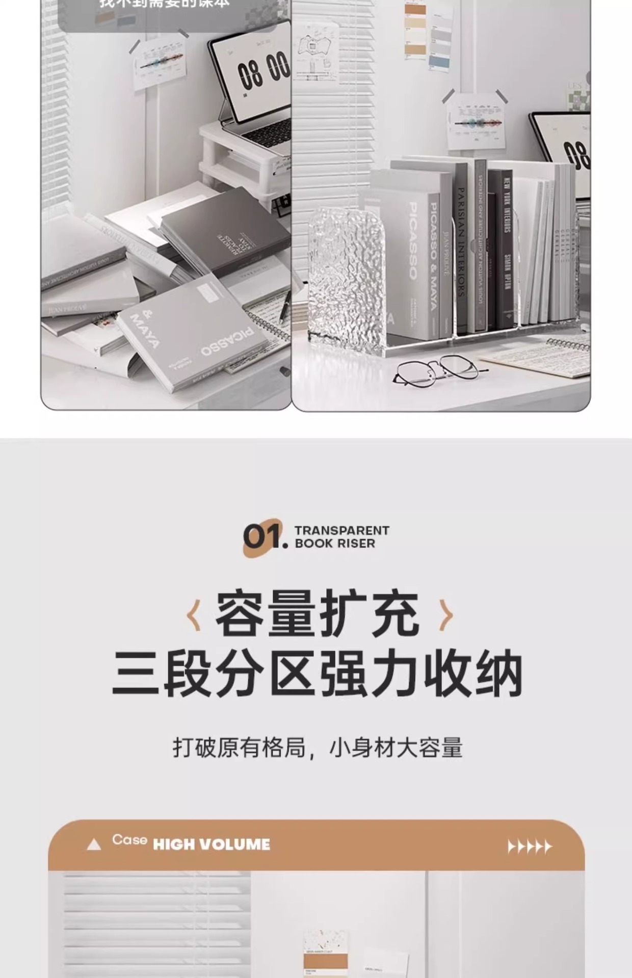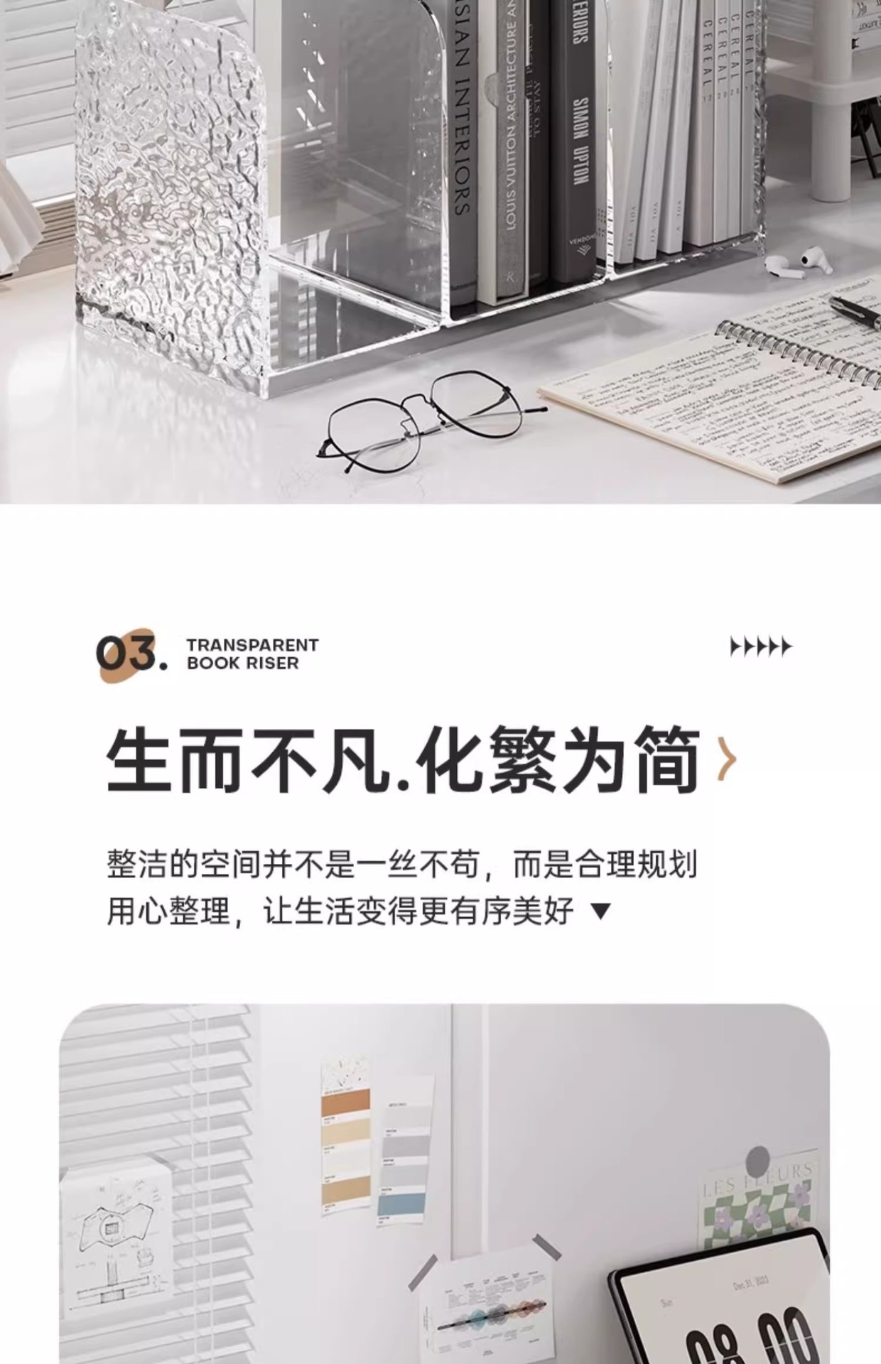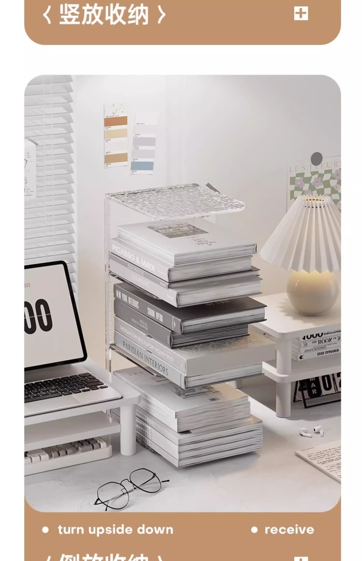 라이트 럭셔리 빙하 패턴 데스크탑 북 스탠드 아크릴 투명 문서 책장 사무실 학생 도서 보관 선반