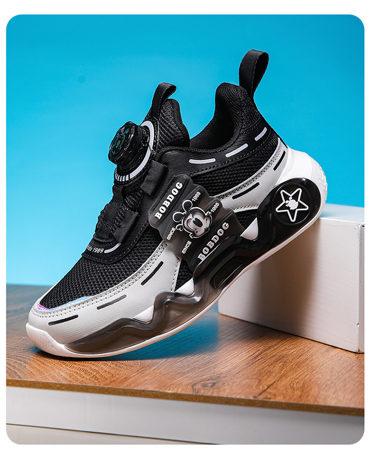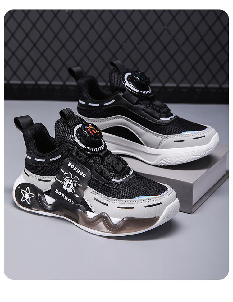 바부 콩 어린이 신발 소년 운동화 봄과 가을 2024 새로운 메쉬 통기성 어린이 신발 큰 어린이 운동화