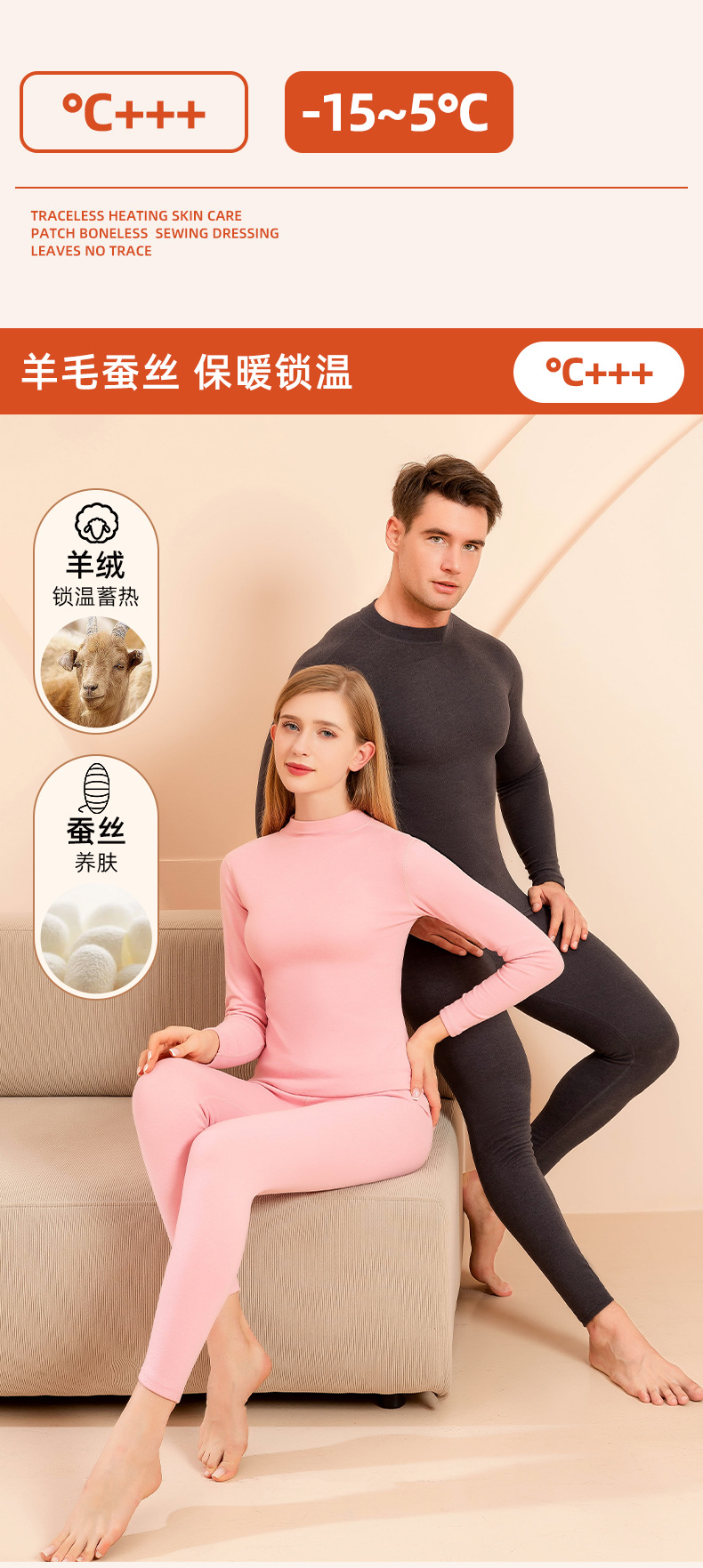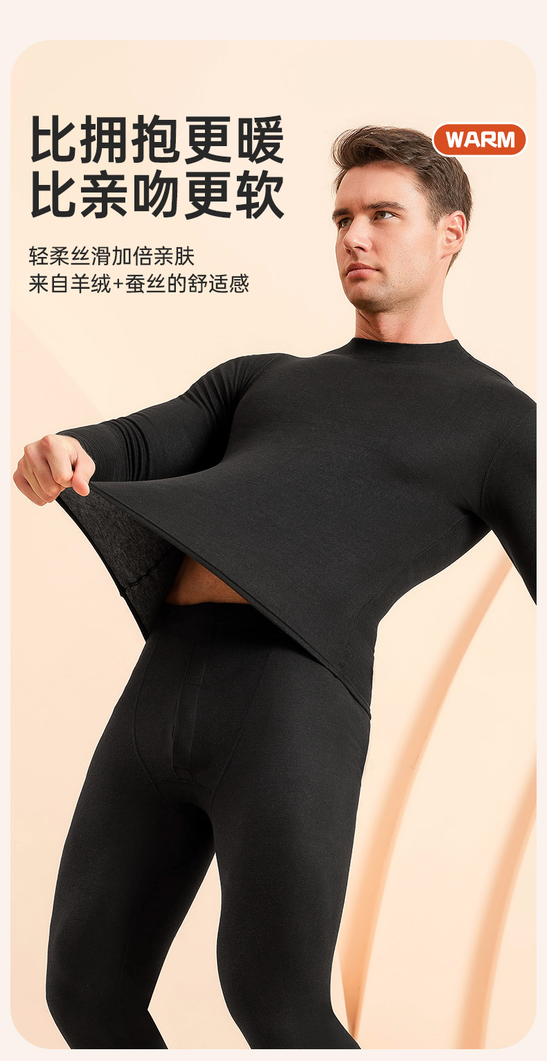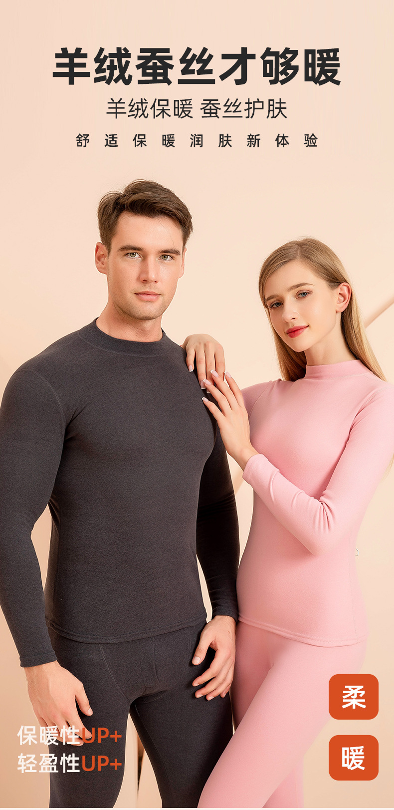 가을과 겨울 남성 모의 칼라 열 속옷 여성 캐시미어 실크 가을 옷과 바지 중간 칼라베이스 속옷 세트스토어 가기