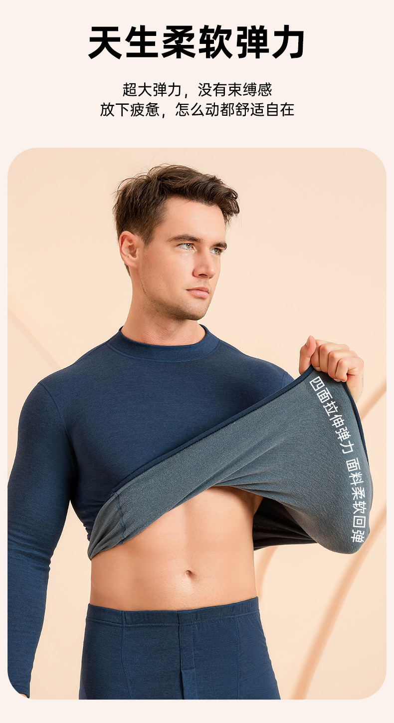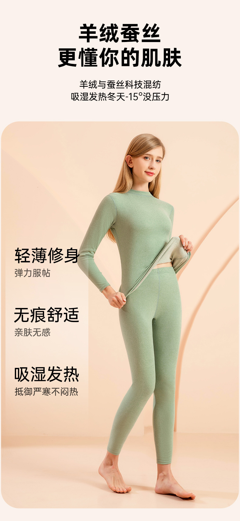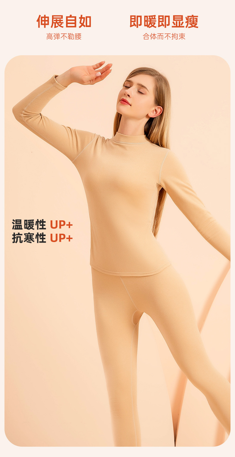 가을과 겨울 남성 모의 칼라 열 속옷 여성 캐시미어 실크 가을 옷과 바지 중간 칼라베이스 속옷 세트스토어 가기