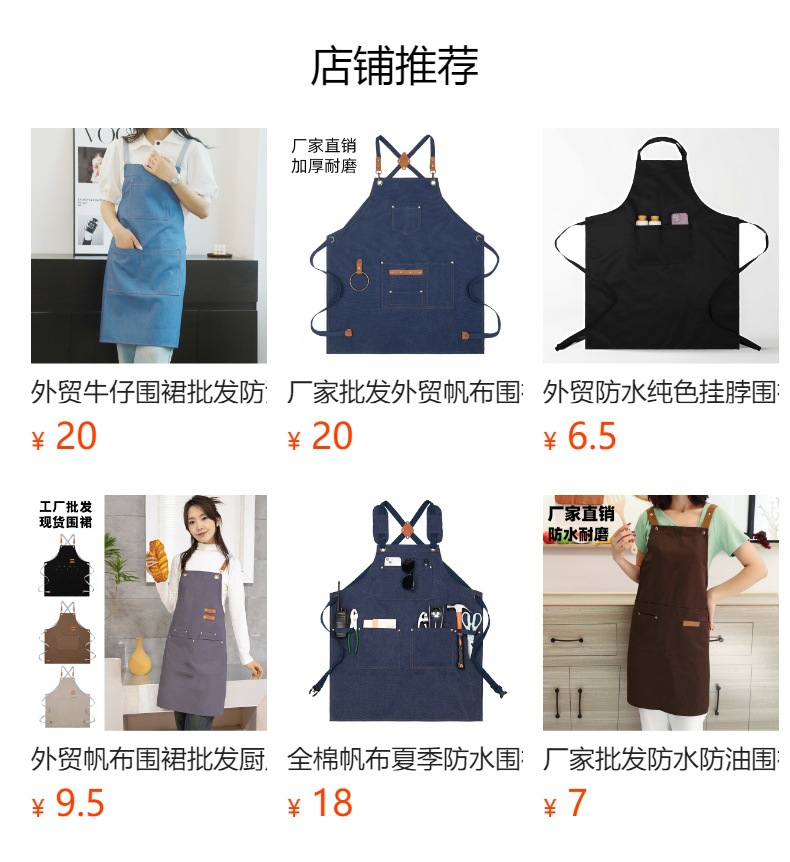 本厂是专业生产围裙20年的工厂,有着丰富的生产,定制经验,,日产量8000+ 全套的生产设备,定制印字刺绣一站式服务 。 来样定制,代加工,一件代发,满足多样需求 跨境电商专属:opp包装,装箱,贴标等服务。 让您售后无忧,快速响应,贴心服务一路相伴