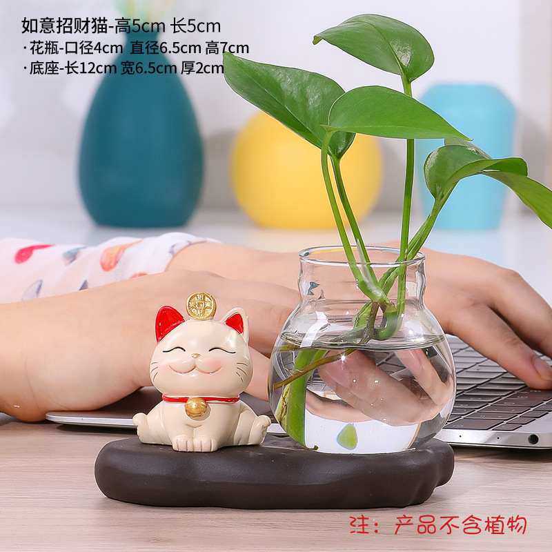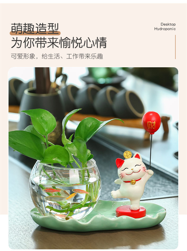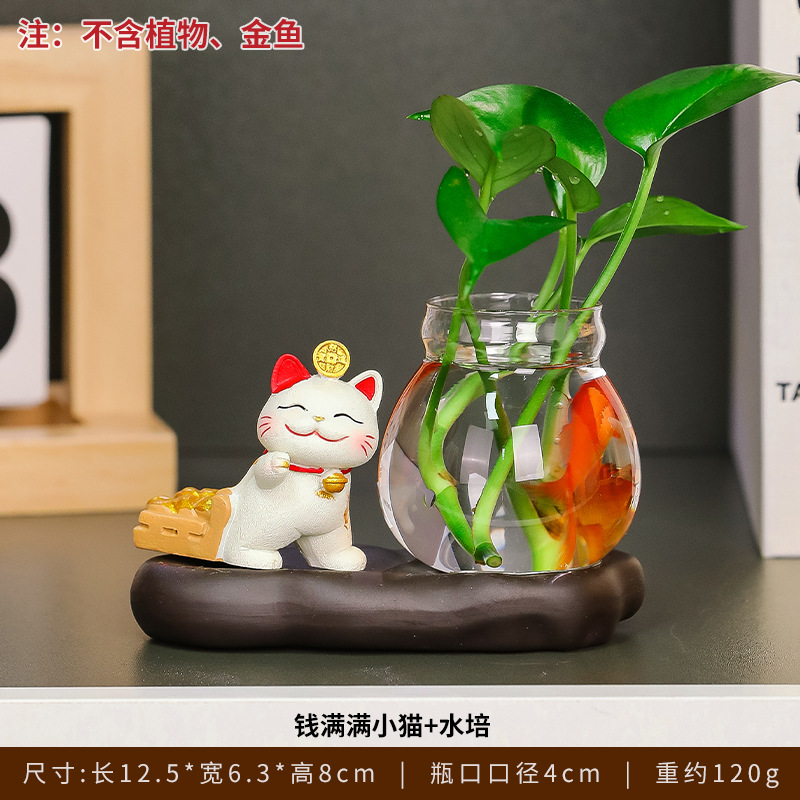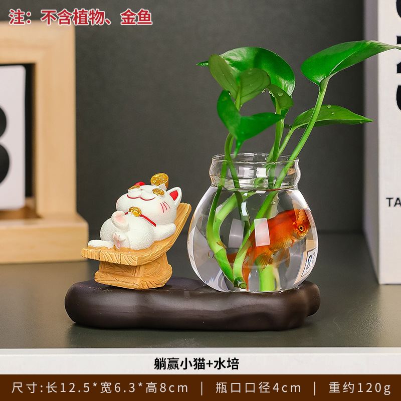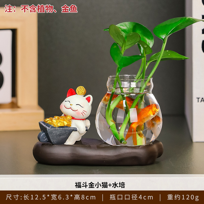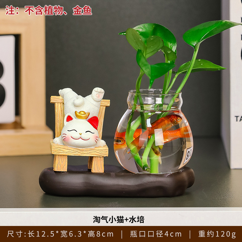 럭키 고양이 홈 액세서리 수경 꽃 배치 꽃병 거실 사무실 책상 장식 고양이 작은 물고기 탱크