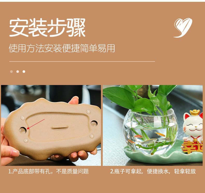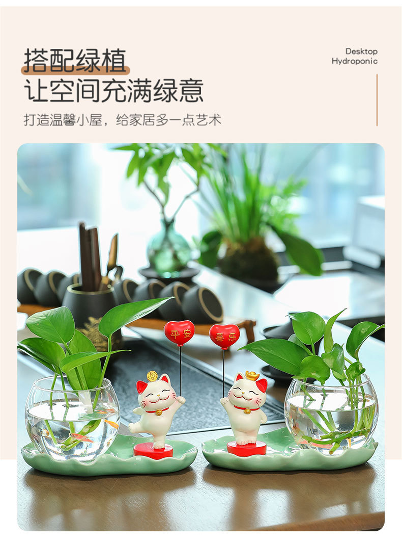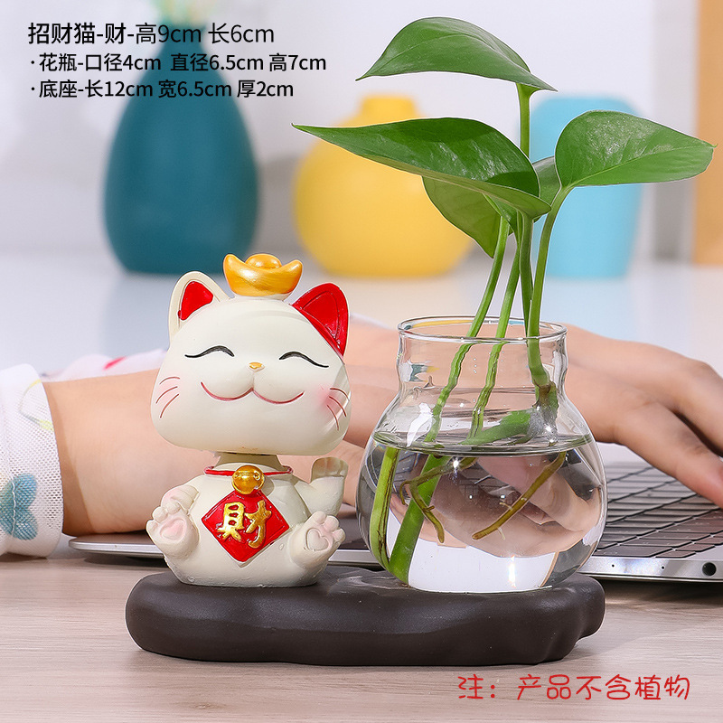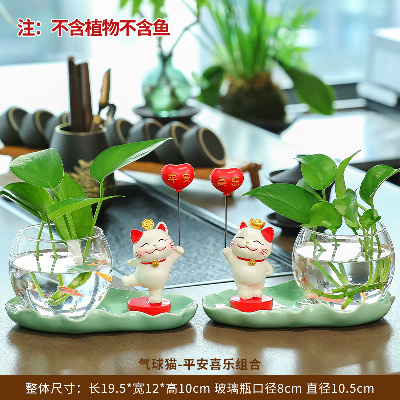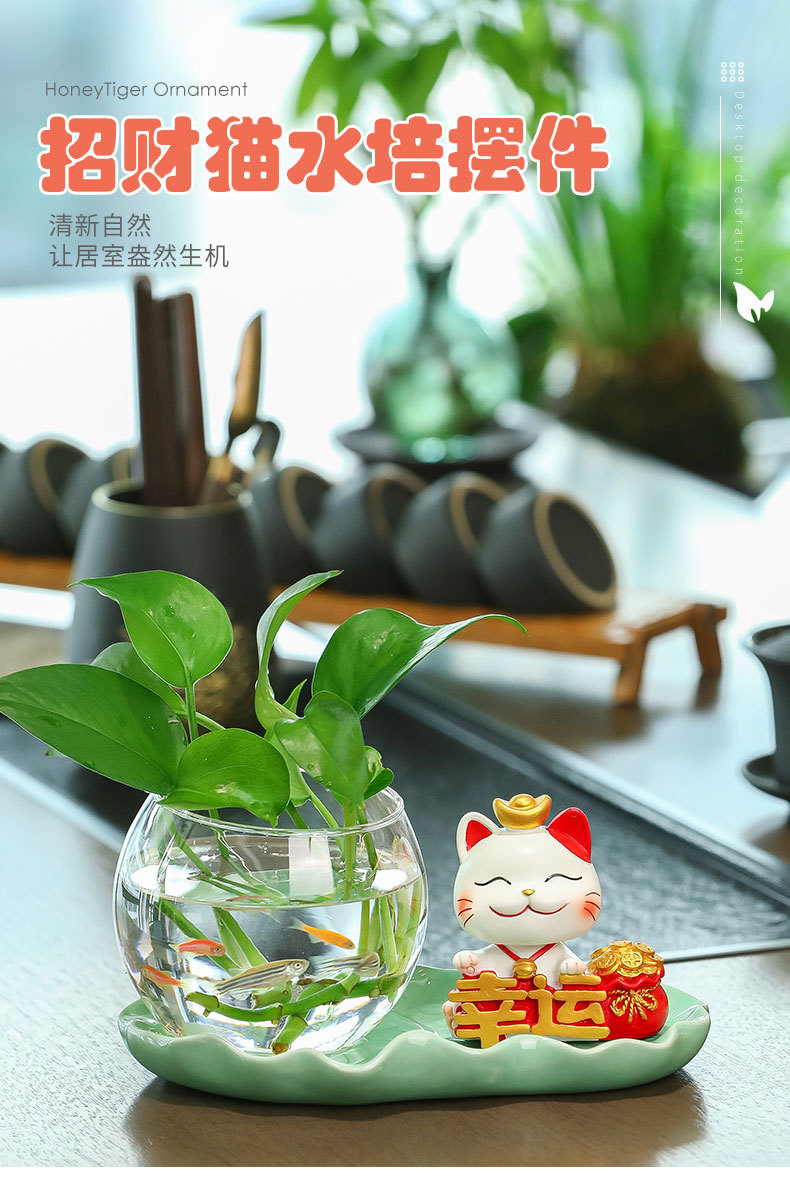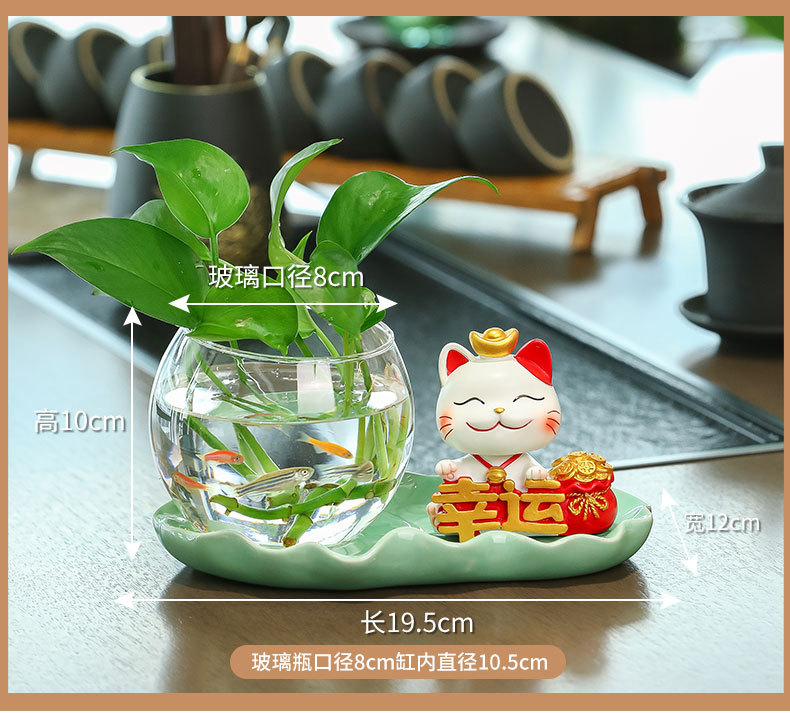 럭키 고양이 홈 액세서리 수경 꽃 배치 꽃병 거실 사무실 책상 장식 고양이 작은 물고기 탱크스토어 가기