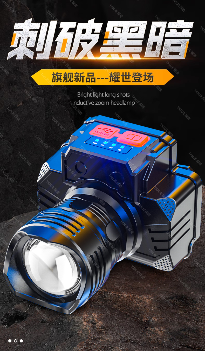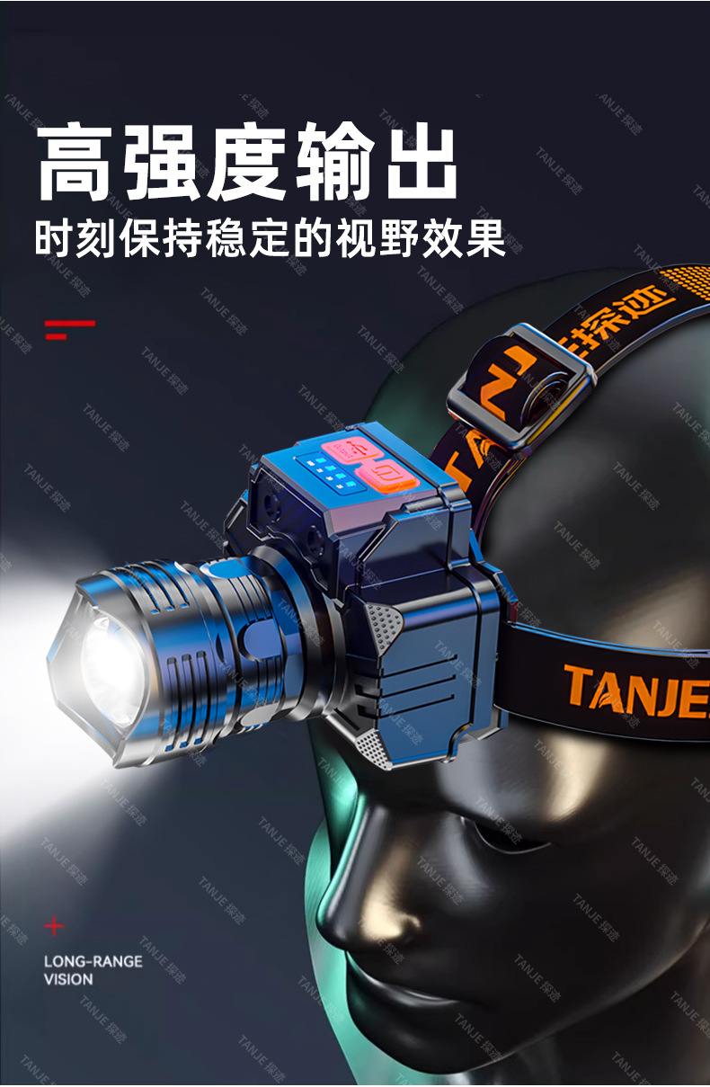 국경 간 밝은 충전 헤드 라이트 장거리 방수 가정용 슈퍼 밝은 머리 장착 야간 낚시 USB 충전 야외 광부의 램프