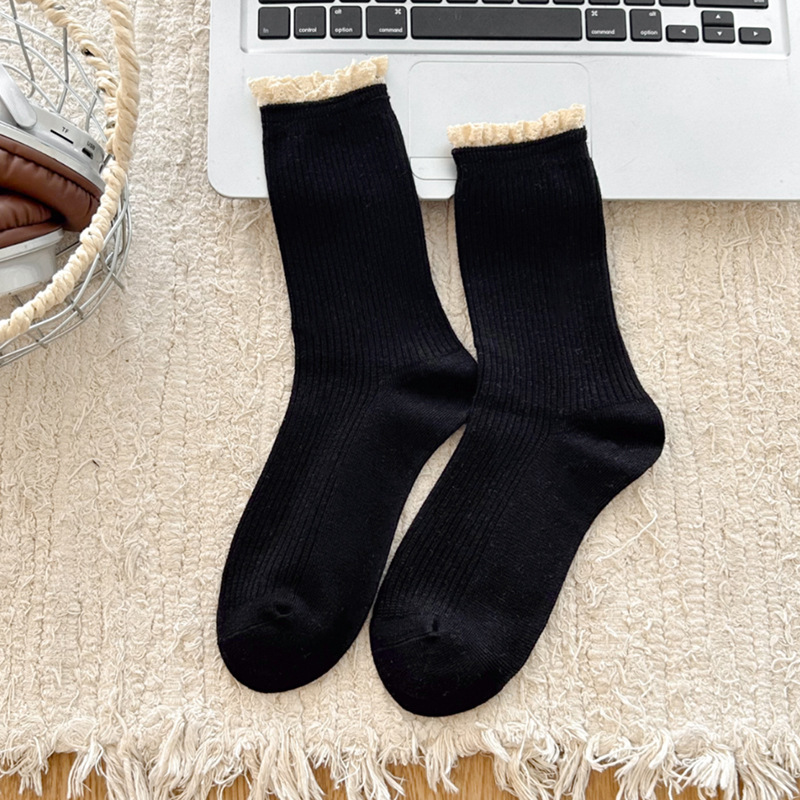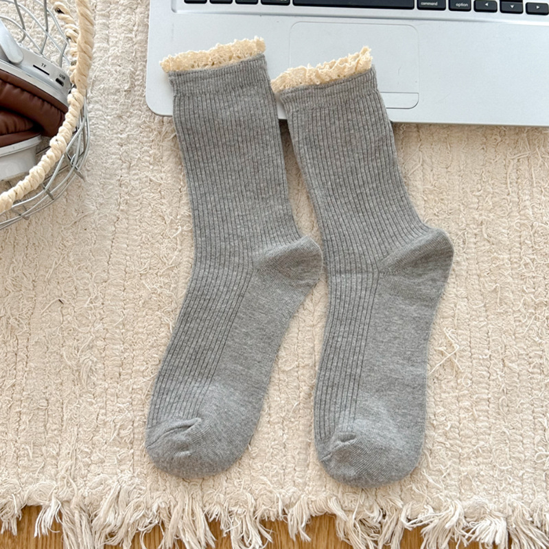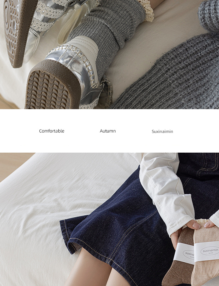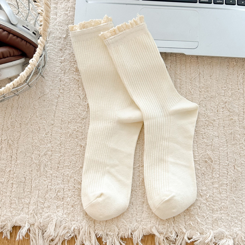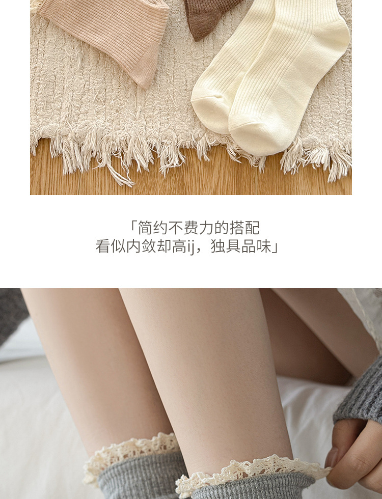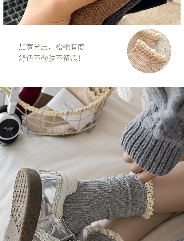 Suxinaimin 양말 여성용 스위트 레이스 레트로 앙고라 레드 솔리드 컬러 주지 미드 배럴 팩 양말스토어 가기