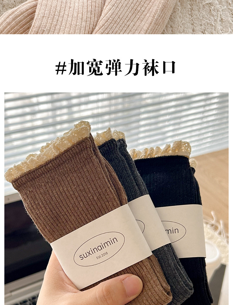 Suxinaimin 양말 여성용 스위트 레이스 레트로 앙고라 레드 솔리드 컬러 주지 미드 배럴 팩 양말