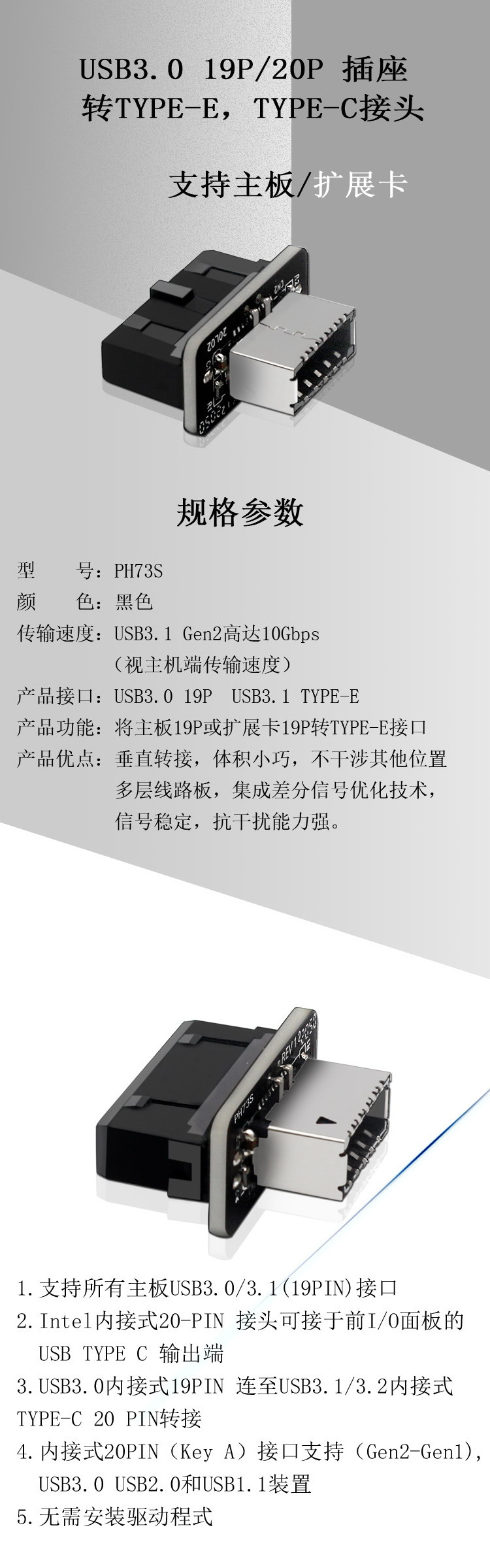 73S 마더 보드 USB3.019 P/20P TYPE-E90 도 어댑터 섀시 전면 TYPEC 플러그인 포트