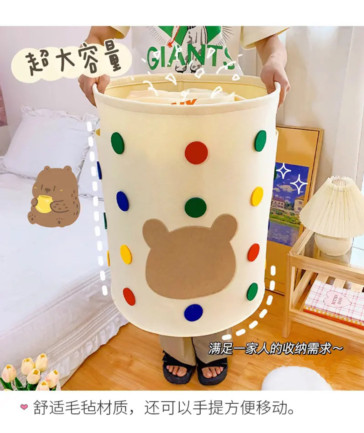 도매 한국식 거대한 귀여운 대용량 웨이브 도트 베어 가정 기숙사 잡화 보관 더러운 옷 바구니