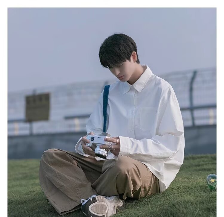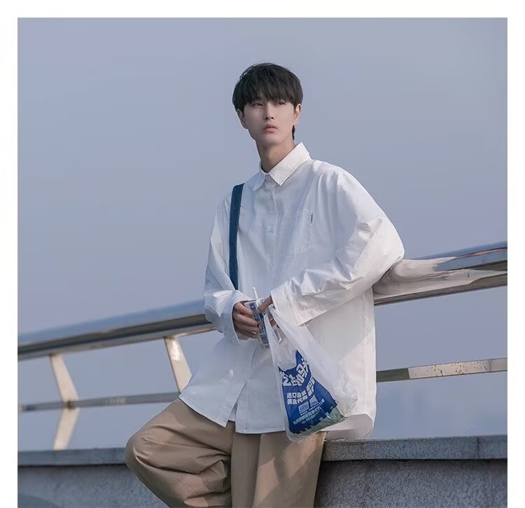 일본 도시 소년 십대 센스 셔츠 남성용 바이브 패셔블 루즈 캐주얼 하이 엔드 센스 긴팔 셔츠 재킷