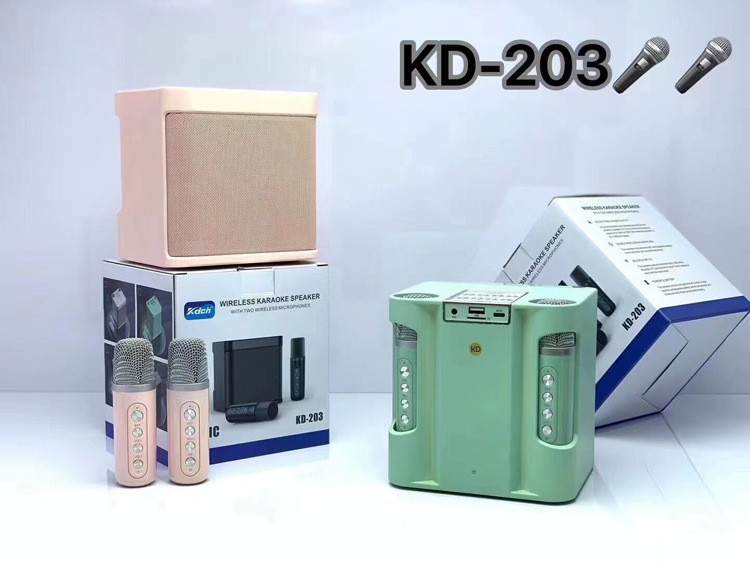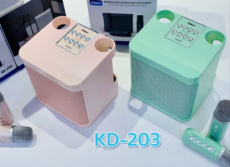 KD-203 가라오케 세트 K가요 오디오 시스템 무선 블루투스 듀얼 마이크 스피커 마이크 서브우퍼 휴대용