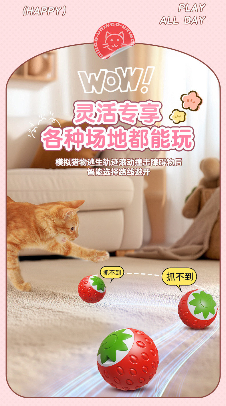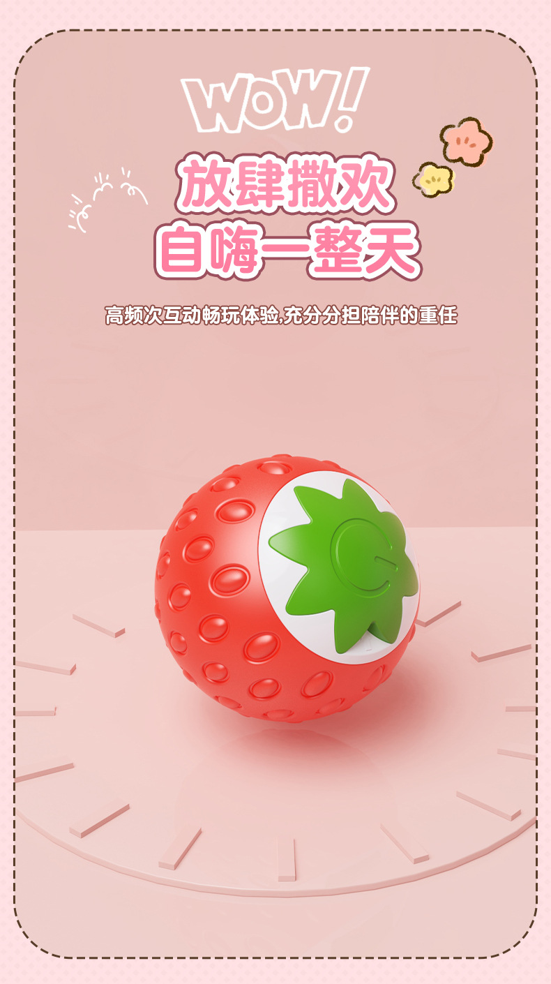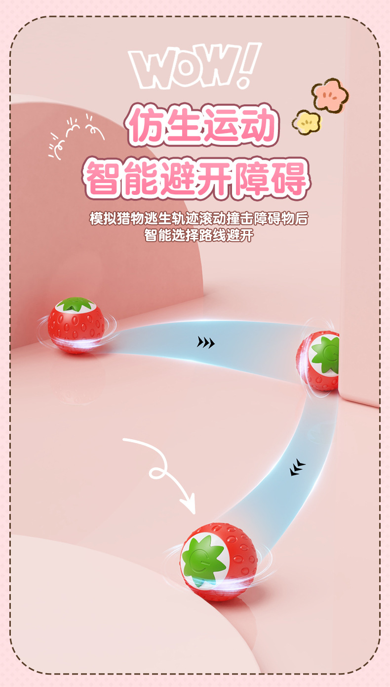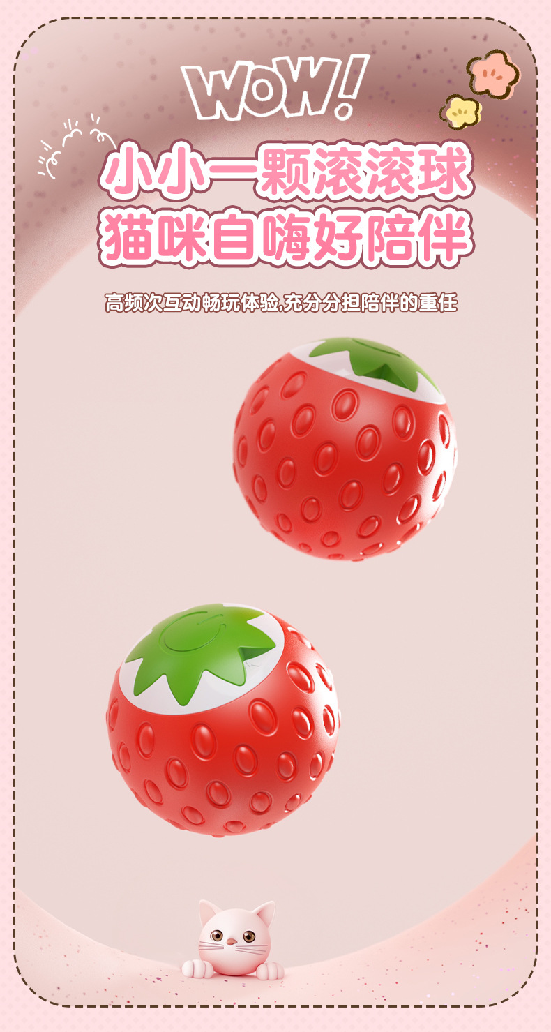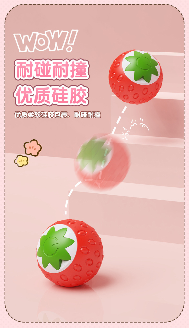 딸기 애완 동물 롤링 볼 전기 고양이 장난감 그라인딩 치아 저항 물린 실내 해독 훈련 티제 볼 점프 볼스토어 가기