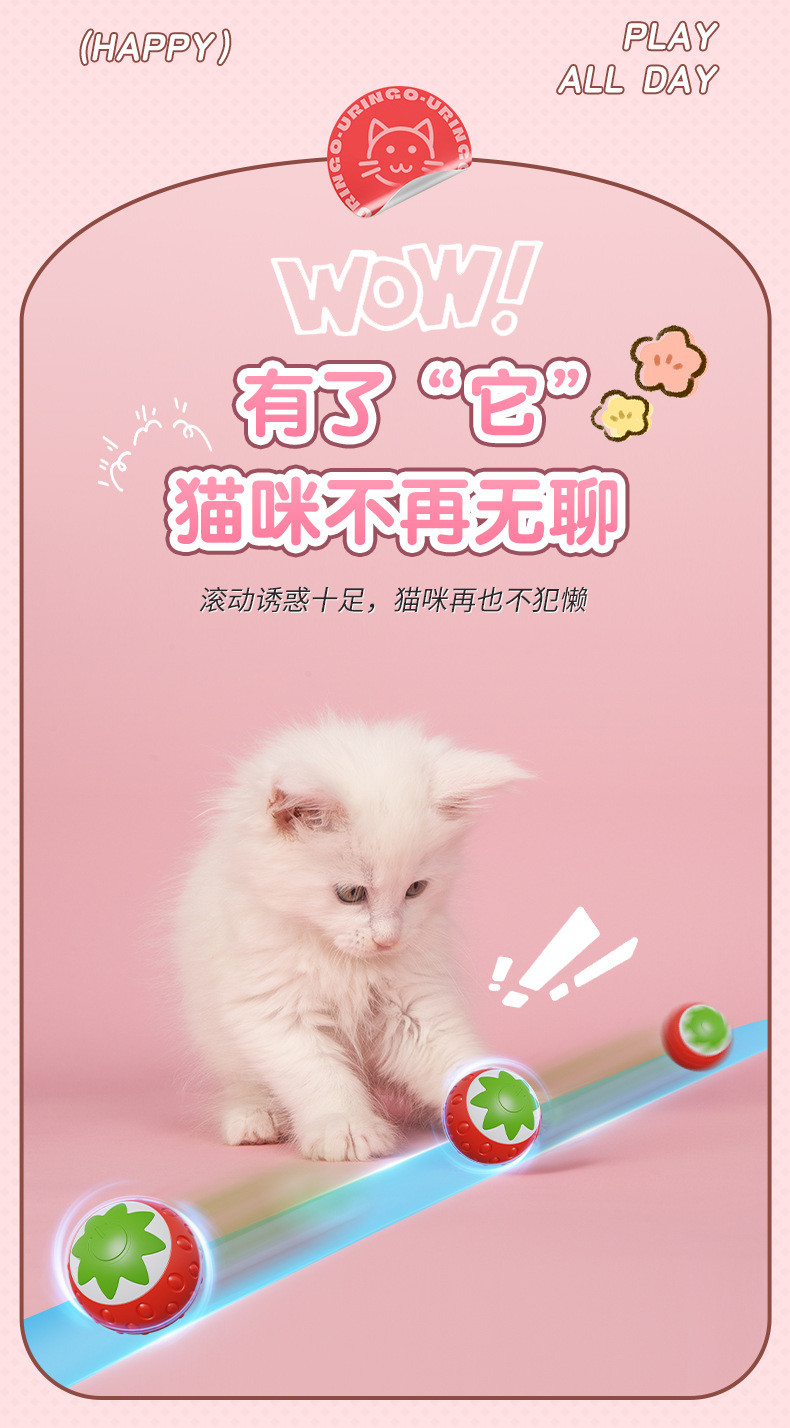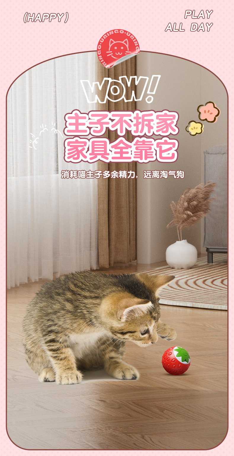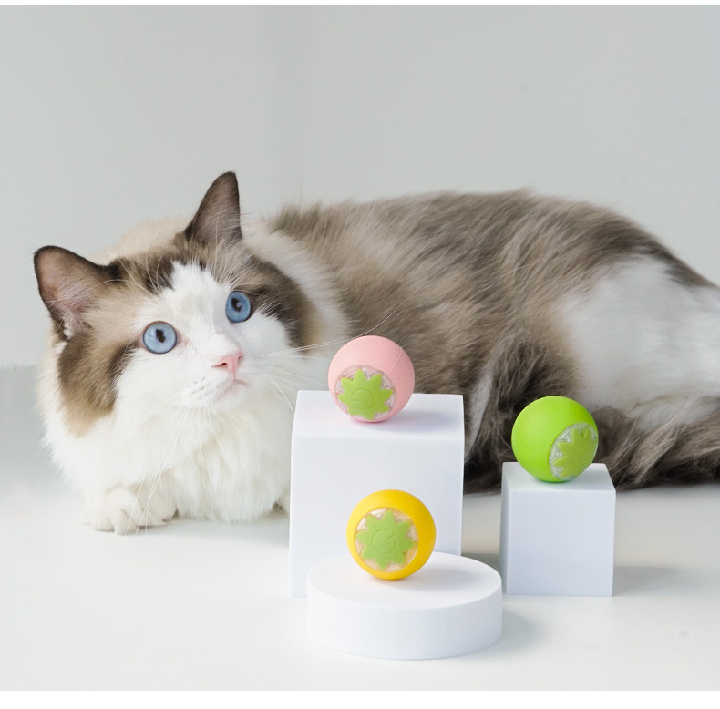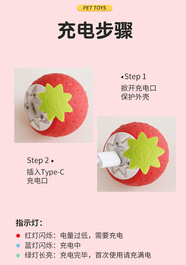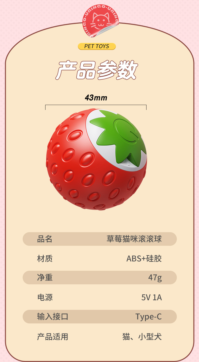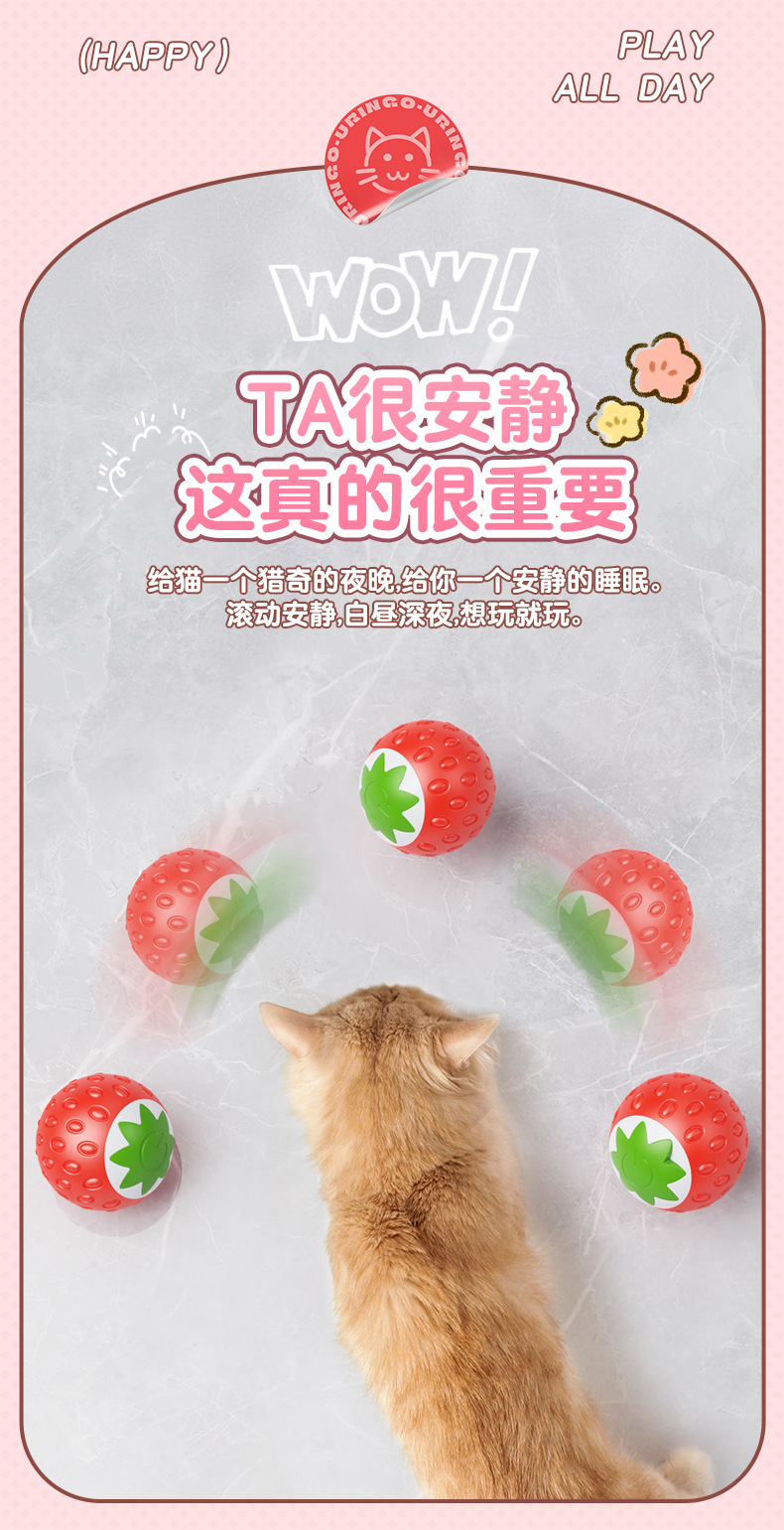 딸기 애완 동물 롤링 볼 전기 고양이 장난감 그라인딩 치아 저항 물린 실내 해독 훈련 티제 볼 점프 볼스토어 가기