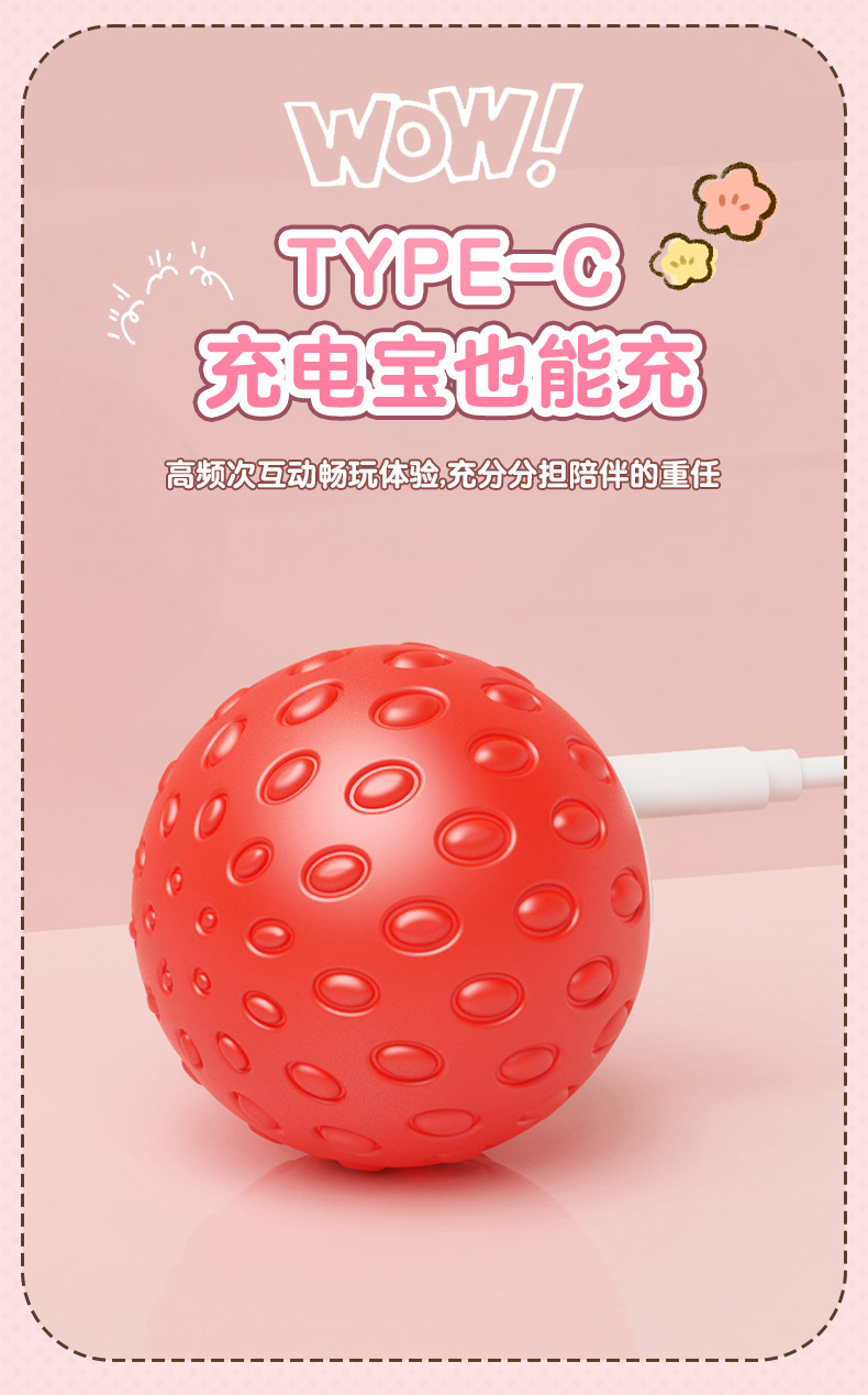 딸기 애완 동물 롤링 볼 전기 고양이 장난감 그라인딩 치아 저항 물린 실내 해독 훈련 티제 볼 점프 볼