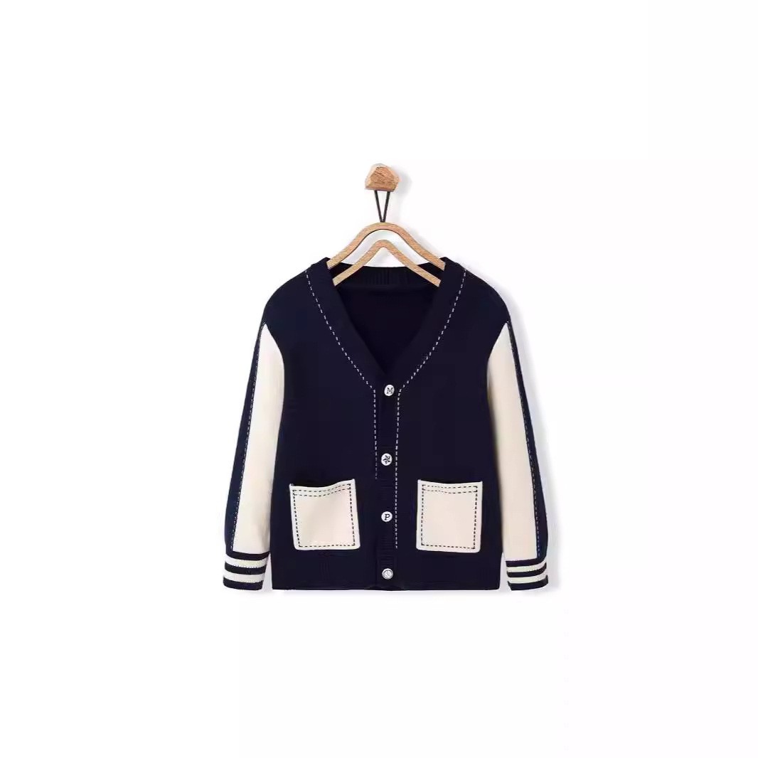 2025 봄 신상품 피스 리틀버드 카운터 동일 스타일 중대형 아동용 재킷 남아용 레터 브이넥 스웨터 가디건스토어 가기