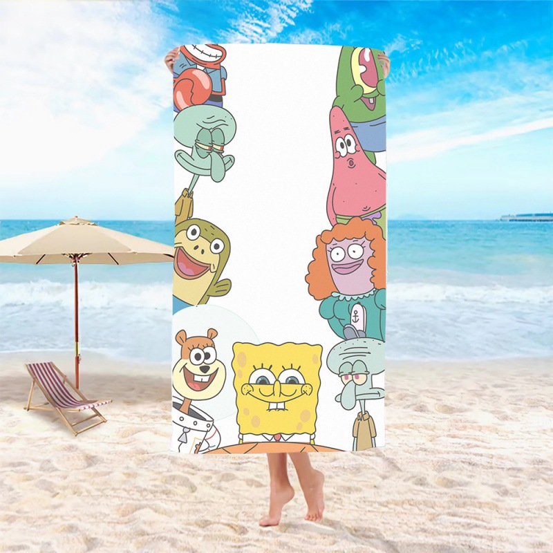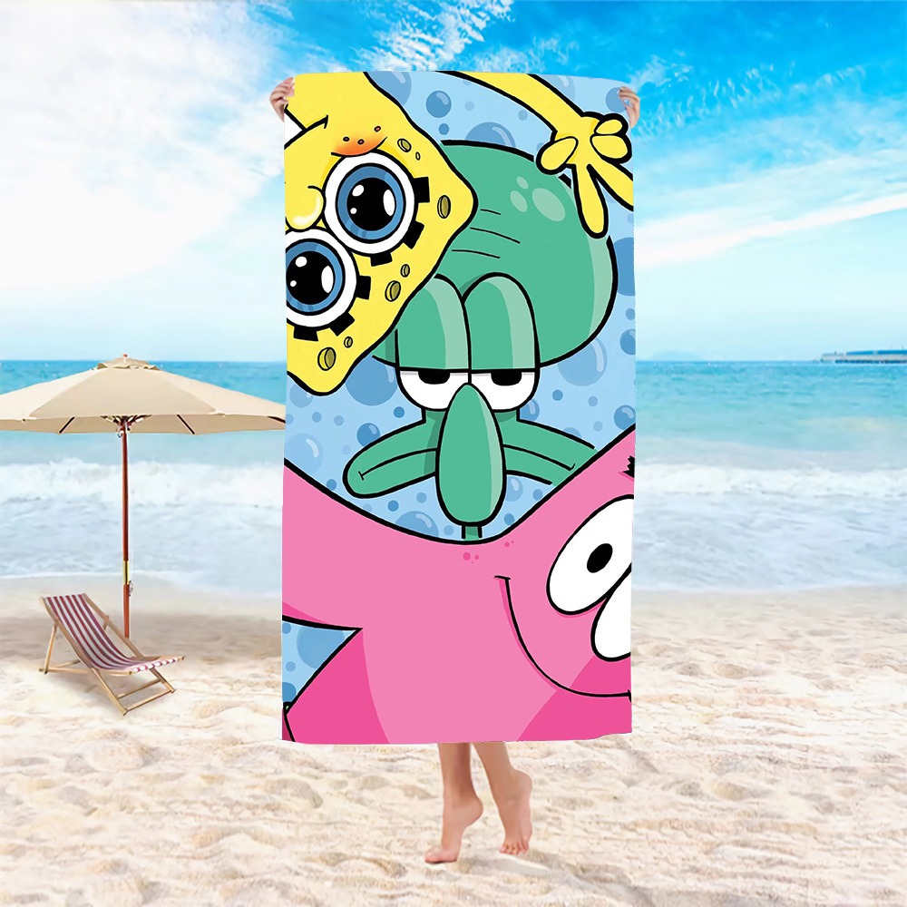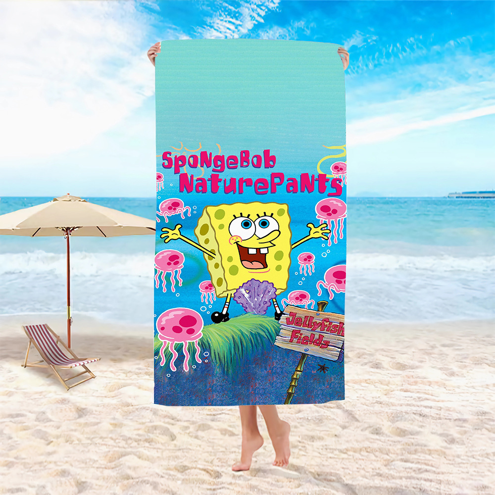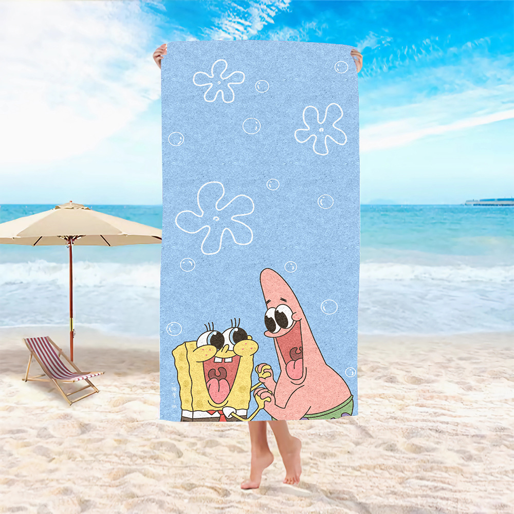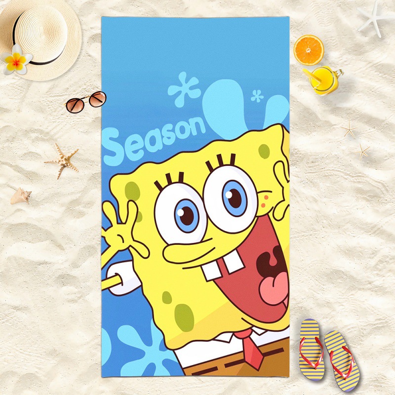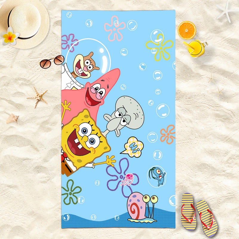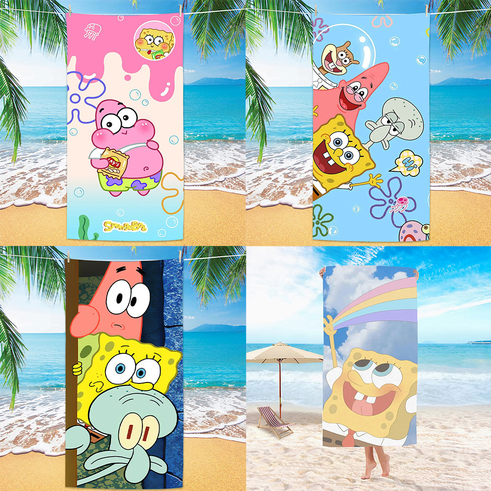 국경 간 롱 비치 타월 마이크로 파이버 인쇄 만화 어린이 빠른 건조 흡수 스폰지 밥 부드러운 목욕 타월