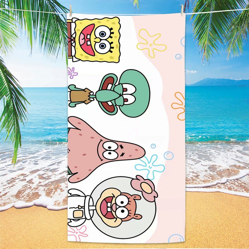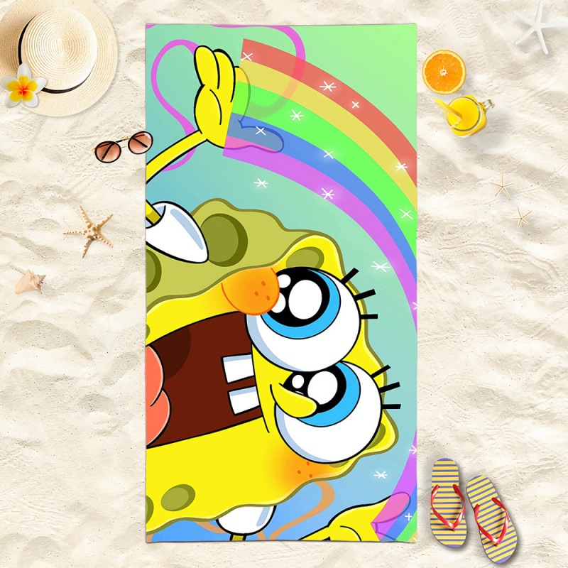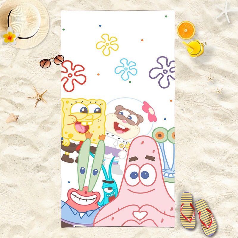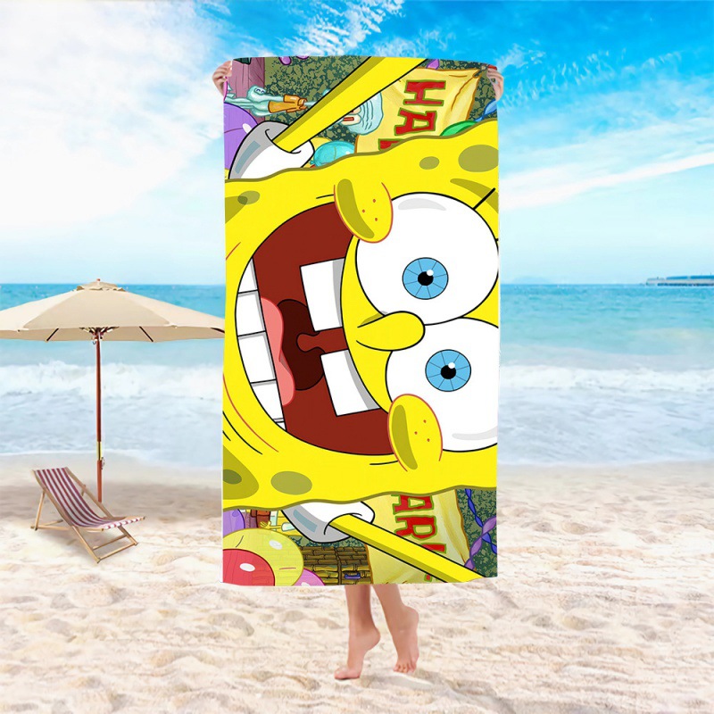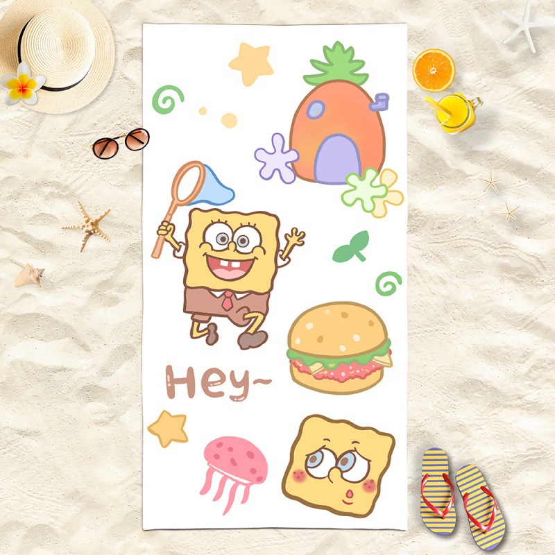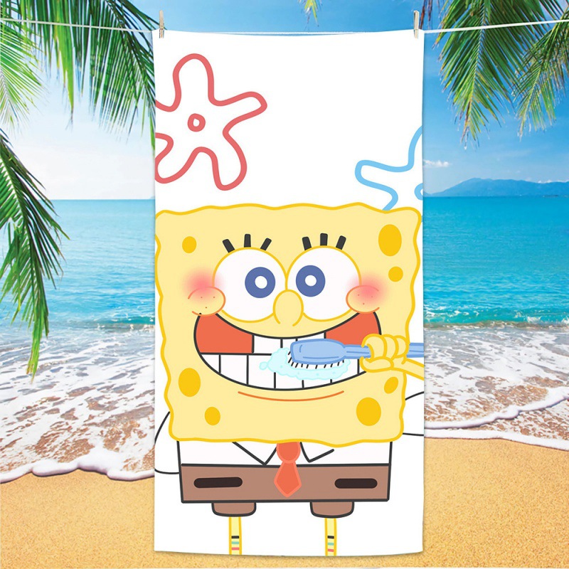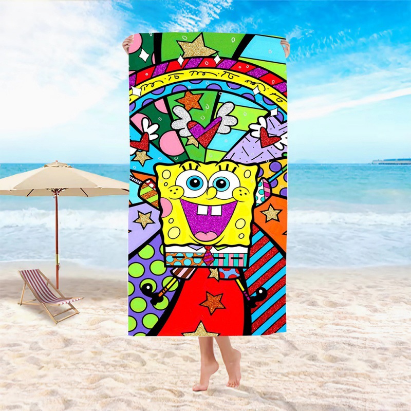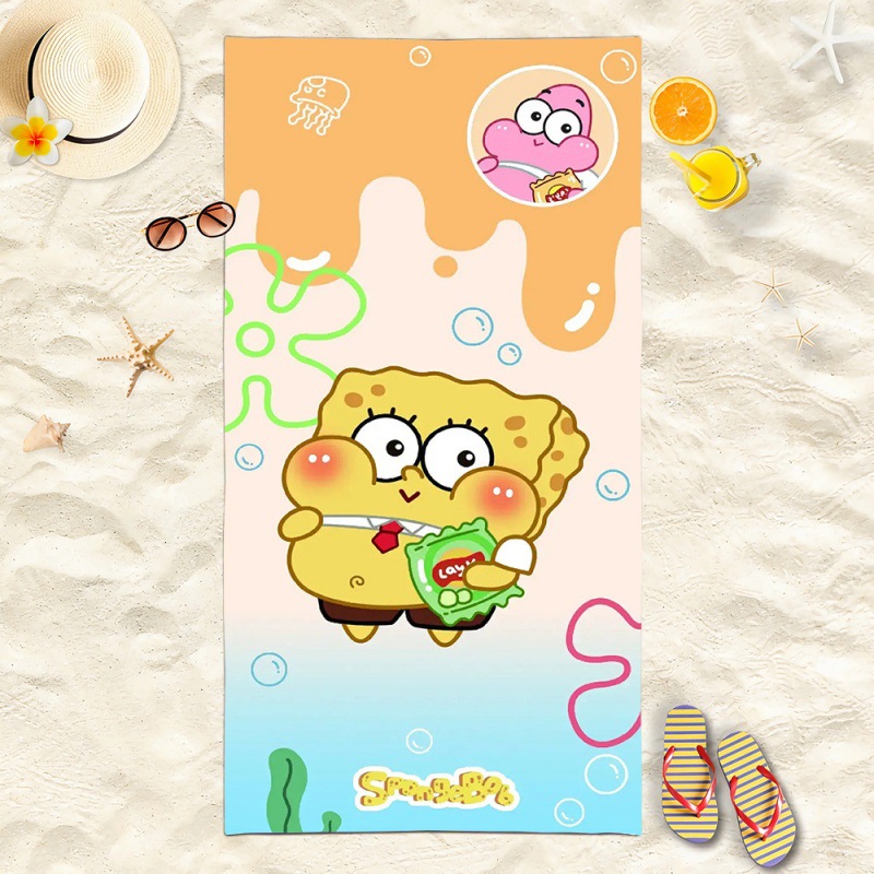국경 간 롱 비치 타월 마이크로 파이버 인쇄 만화 어린이 빠른 건조 흡수 스폰지 밥 부드러운 목욕 타월
