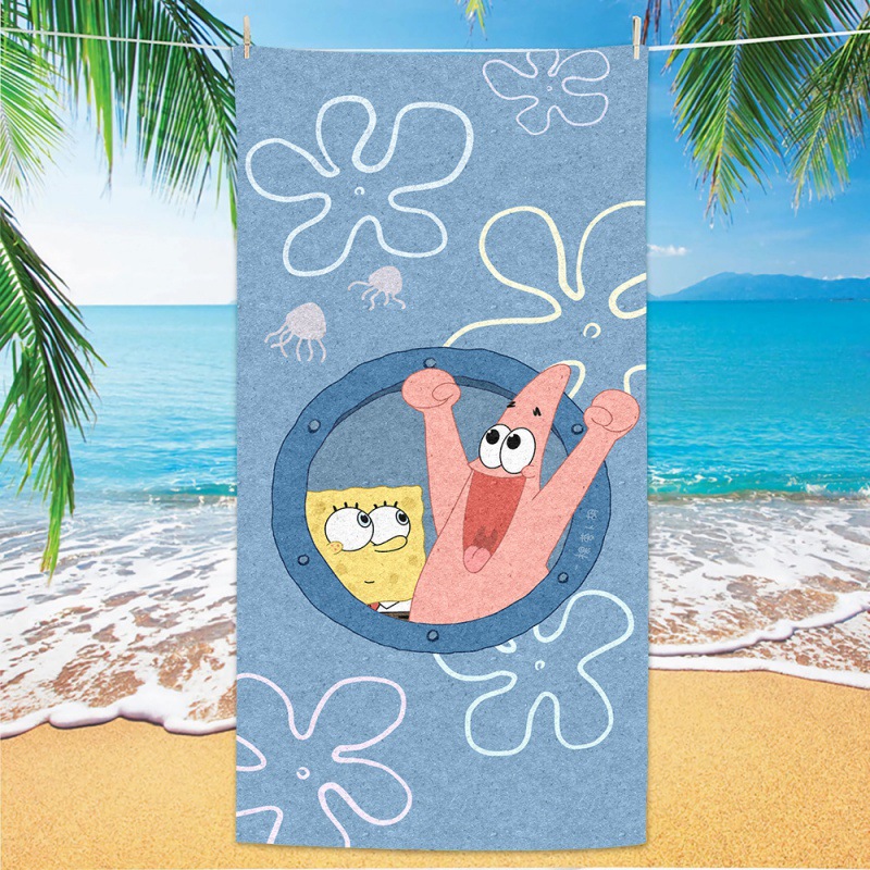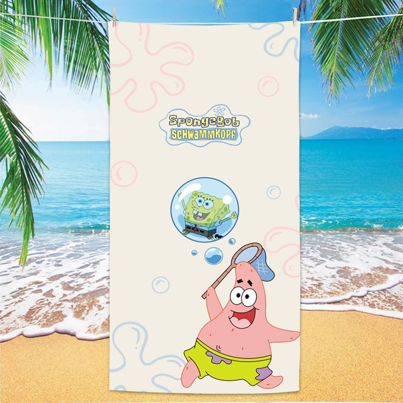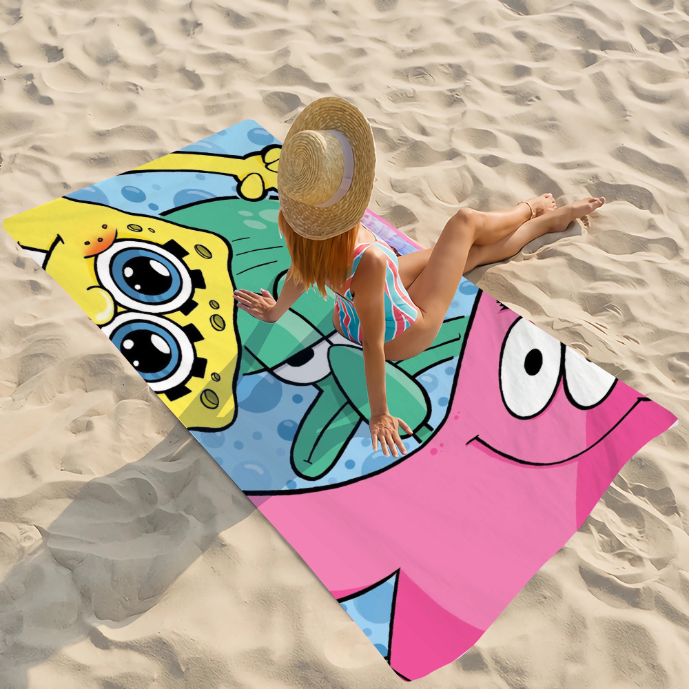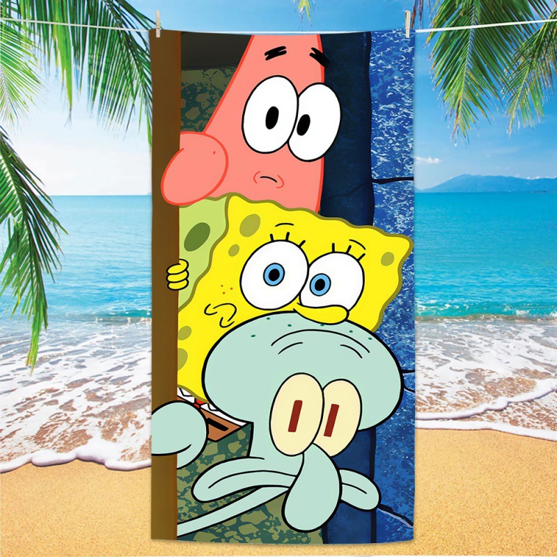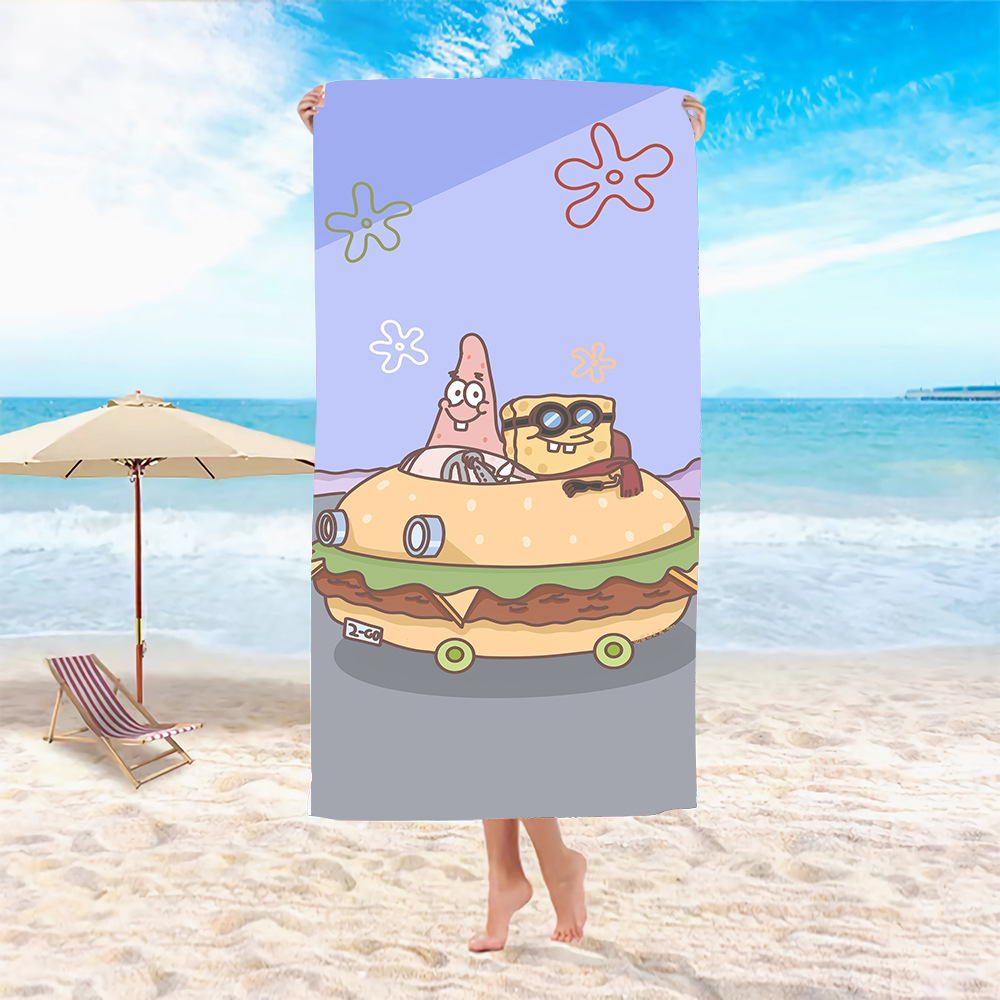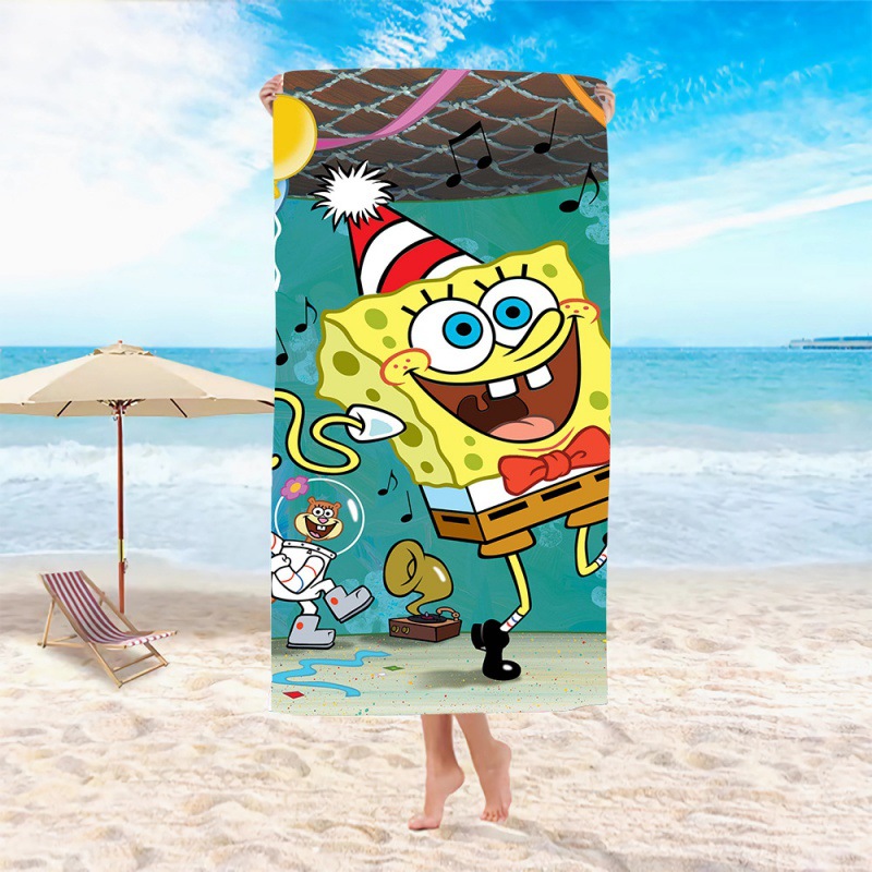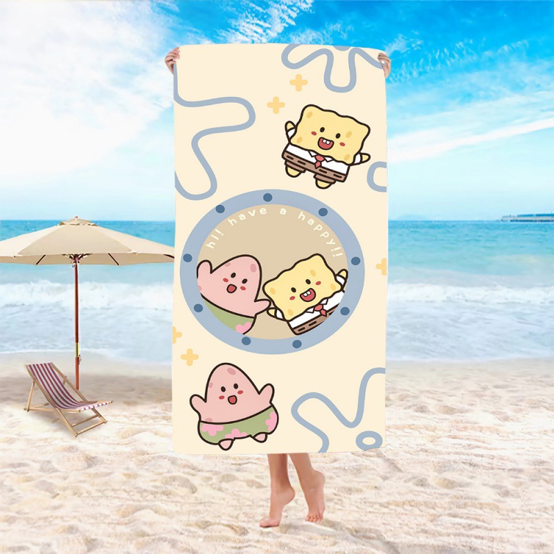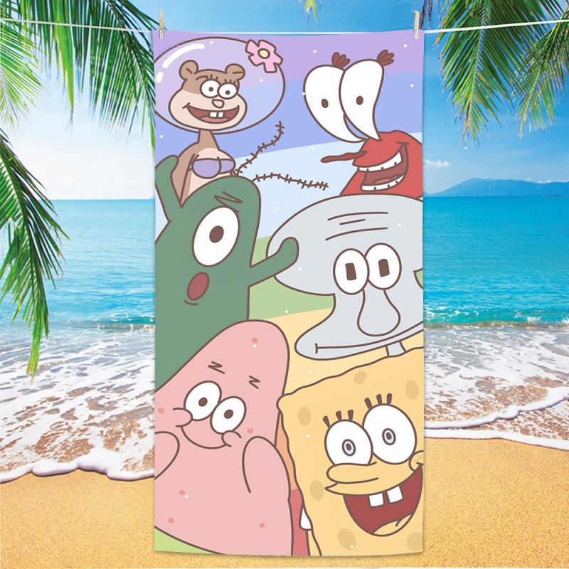 국경 간 롱 비치 타월 마이크로 파이버 인쇄 만화 어린이 빠른 건조 흡수 스폰지 밥 부드러운 목욕 타월