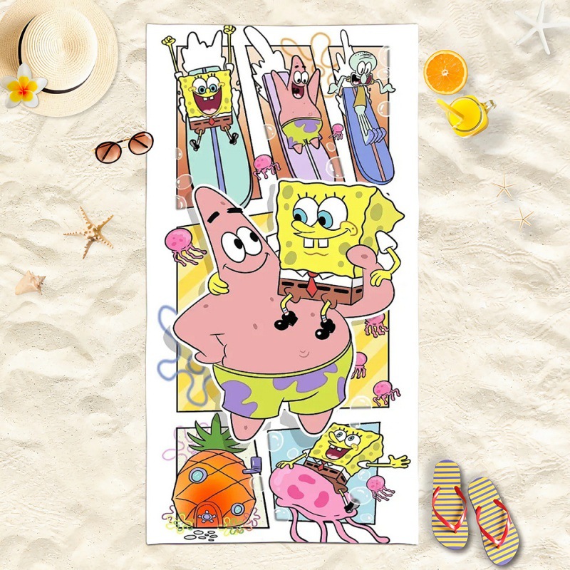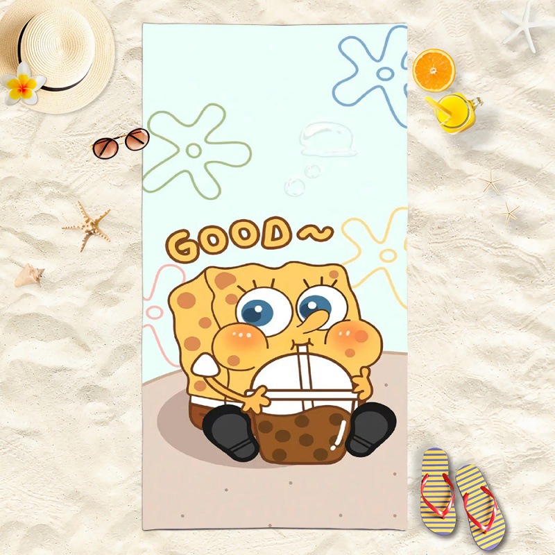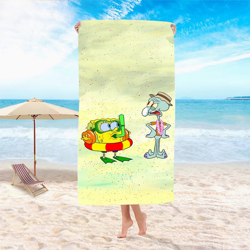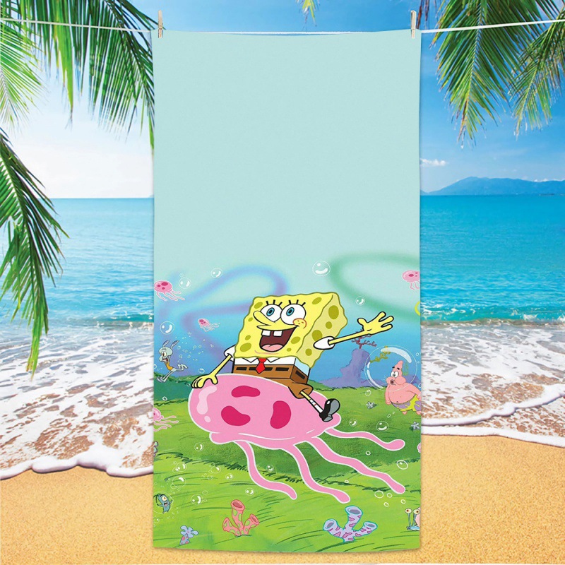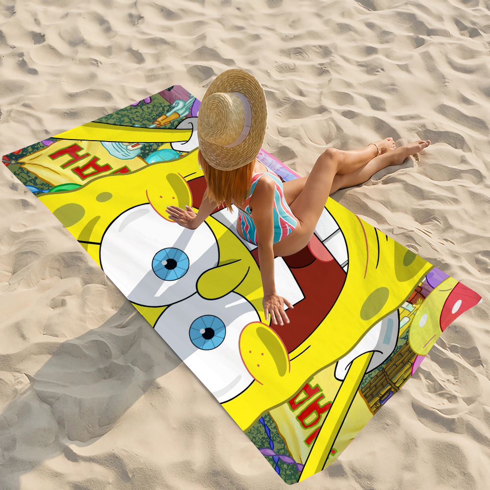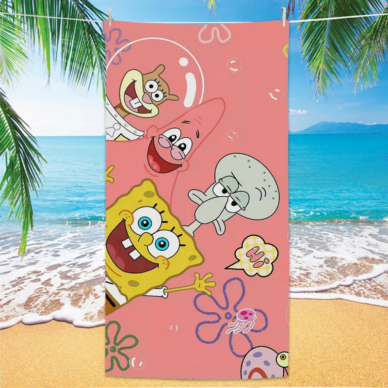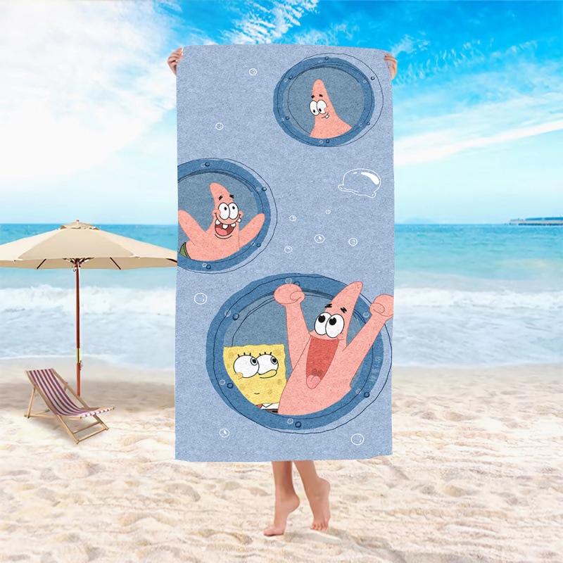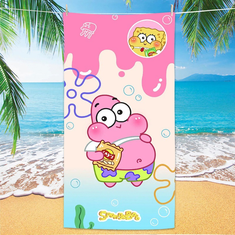 국경 간 롱 비치 타월 마이크로 파이버 인쇄 만화 어린이 빠른 건조 흡수 스폰지 밥 부드러운 목욕 타월