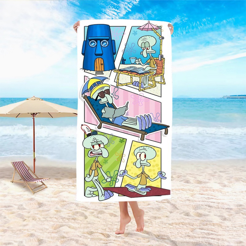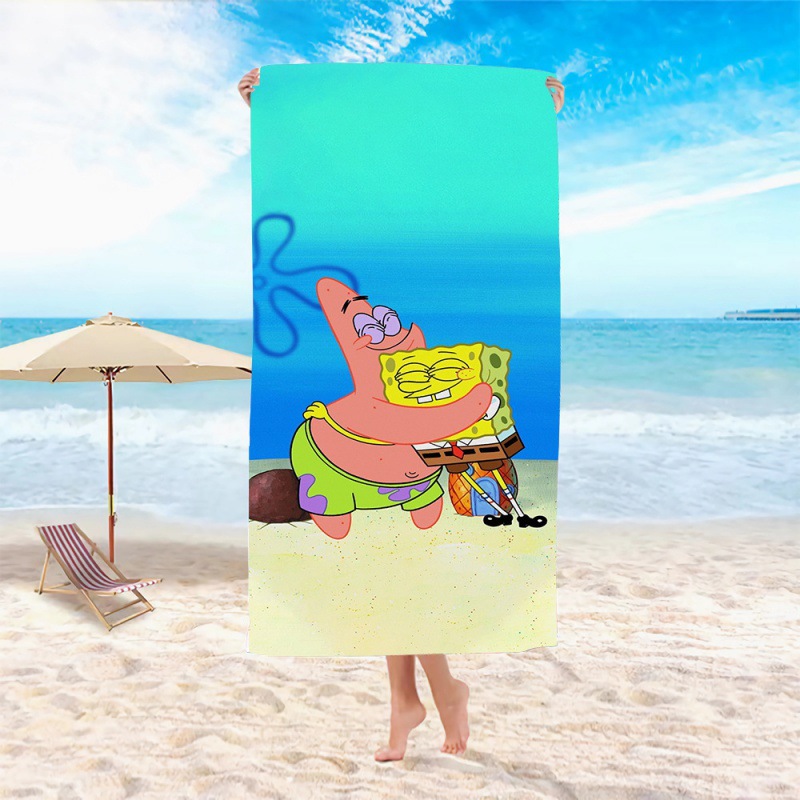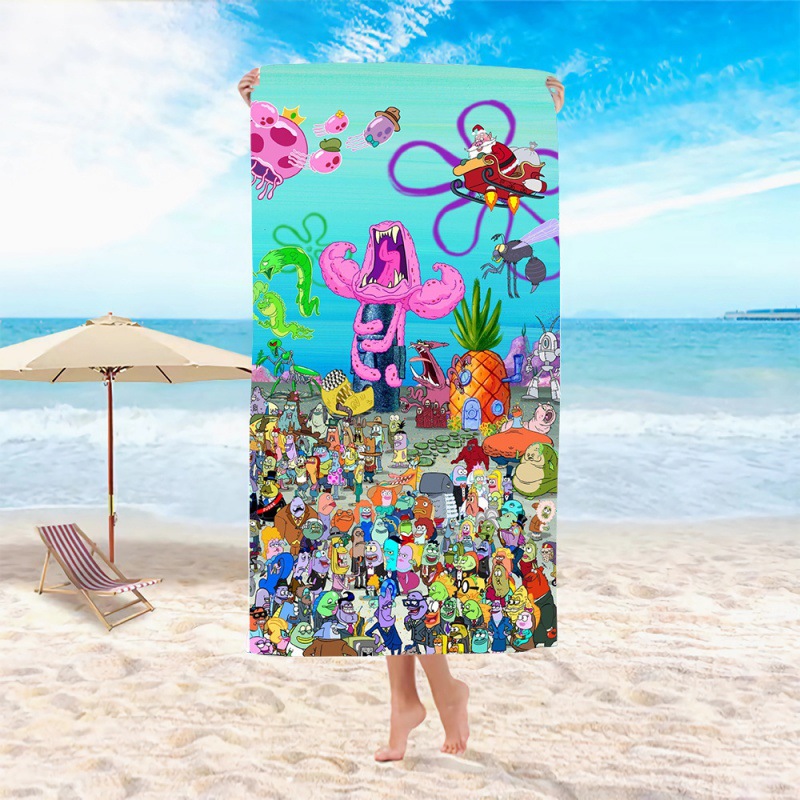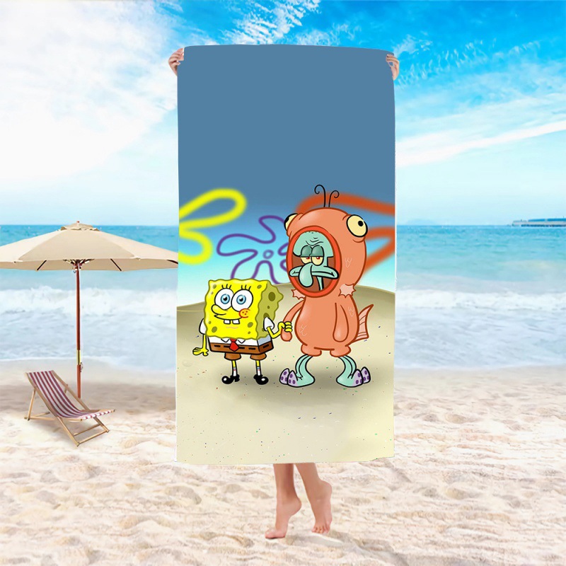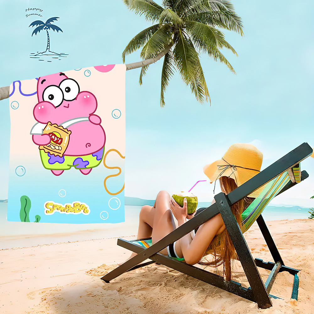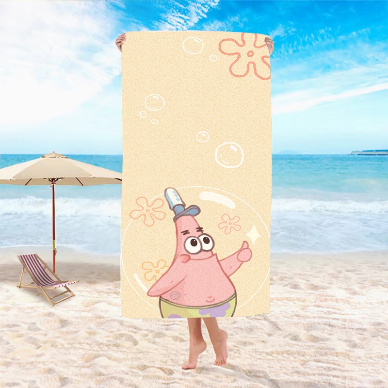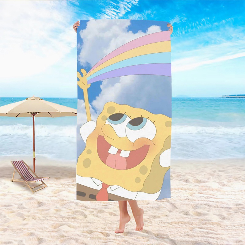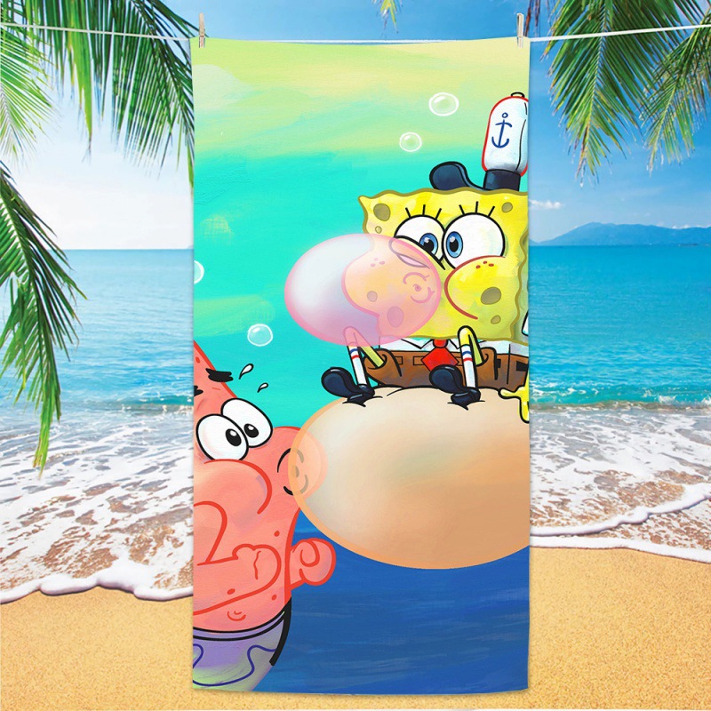 국경 간 롱 비치 타월 마이크로 파이버 인쇄 만화 어린이 빠른 건조 흡수 스폰지 밥 부드러운 목욕 타월