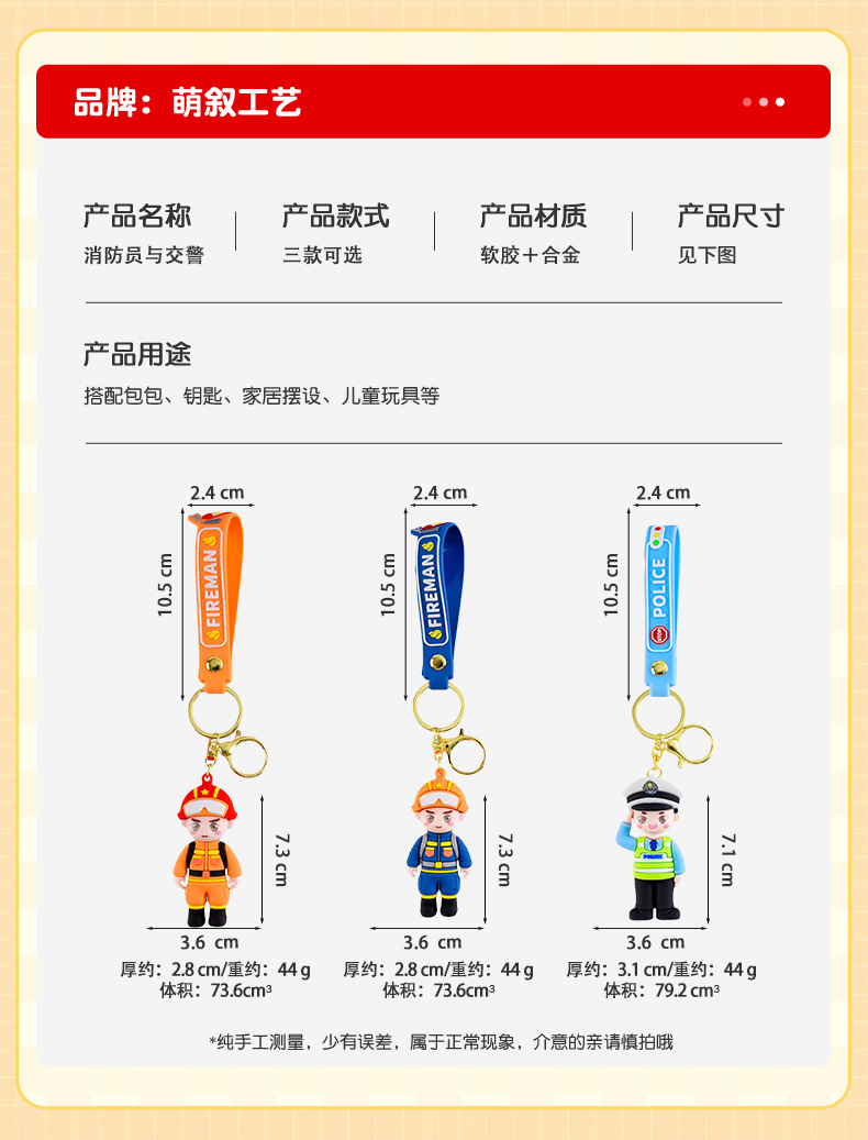 원래 전문 소방관 키 체인 절묘한 학교 가방 펜던트 군사 의사 키 체인 공물 휴일 기념품스토어 가기
