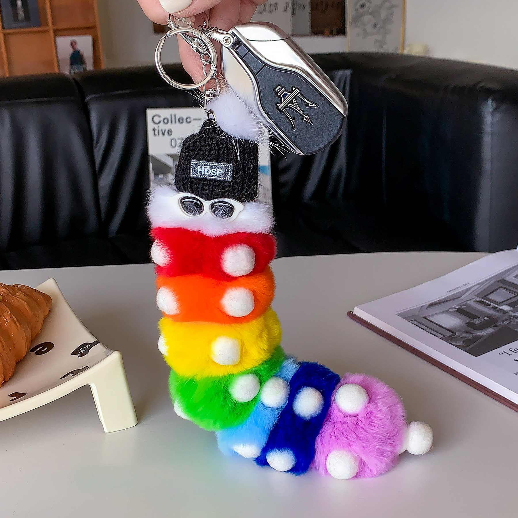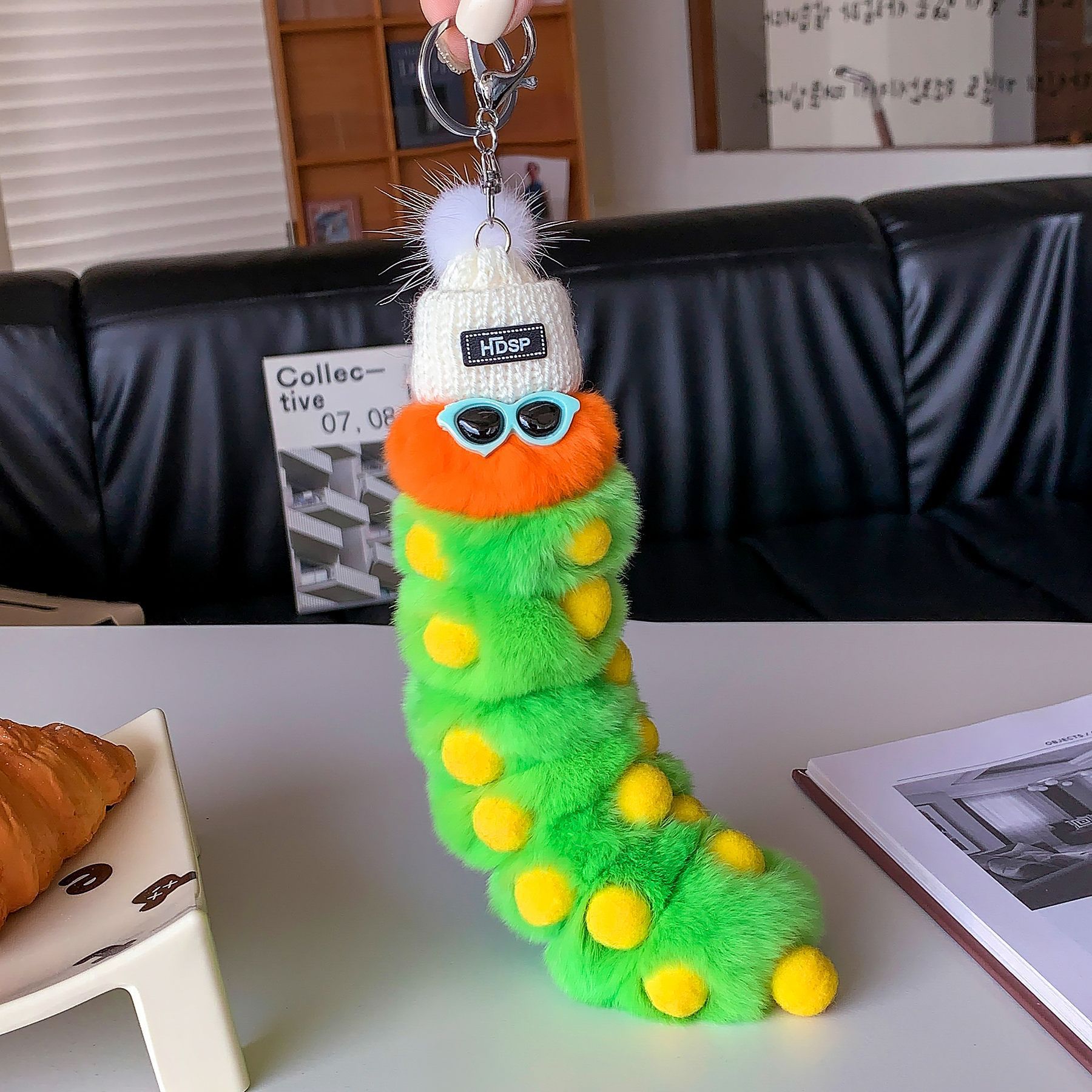 귀여운 새로운 진짜 렉스 토끼 머리 추악한 귀여운 귀여운 큰 애벌레 가방 펜던트 키 체인 교수형 인형스토어 가기