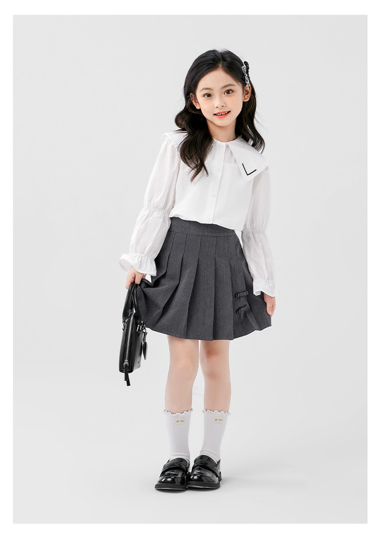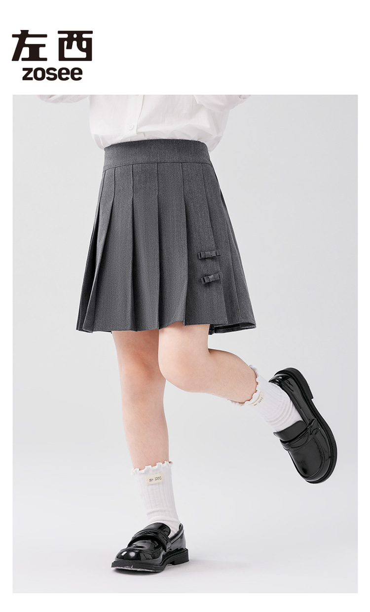 Zuoxi 소녀 하프 길이 주름 치마 대학 스타일 봄 의류 2025 새로운 어린이 회색 교복 JK 짧은 치마 서양식