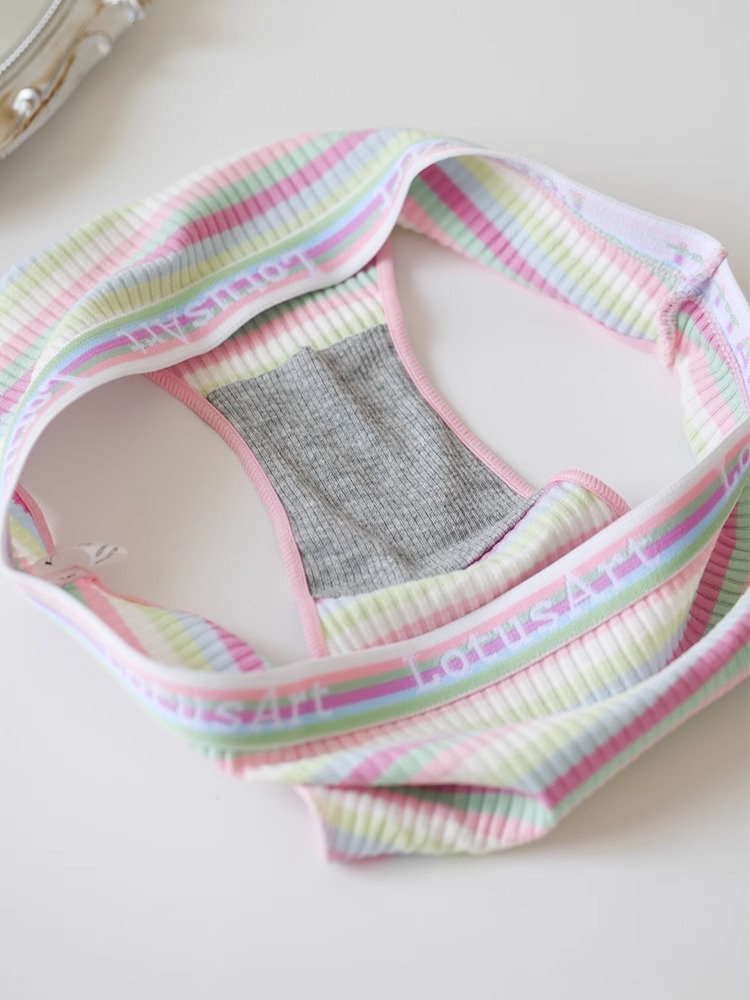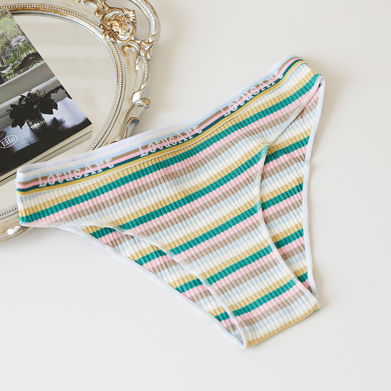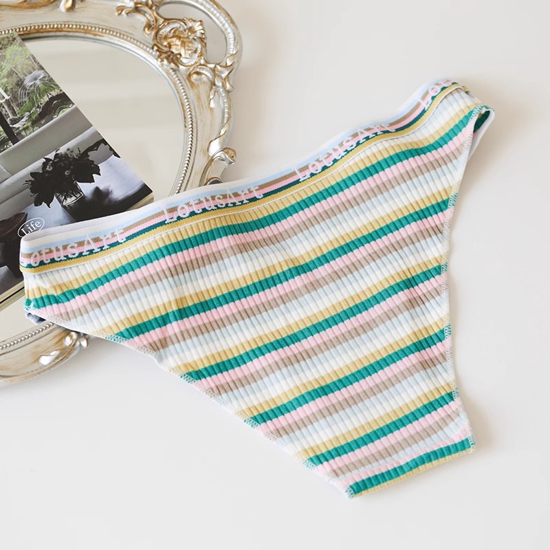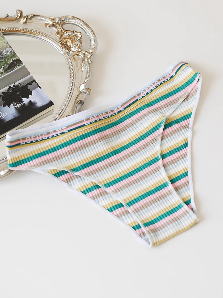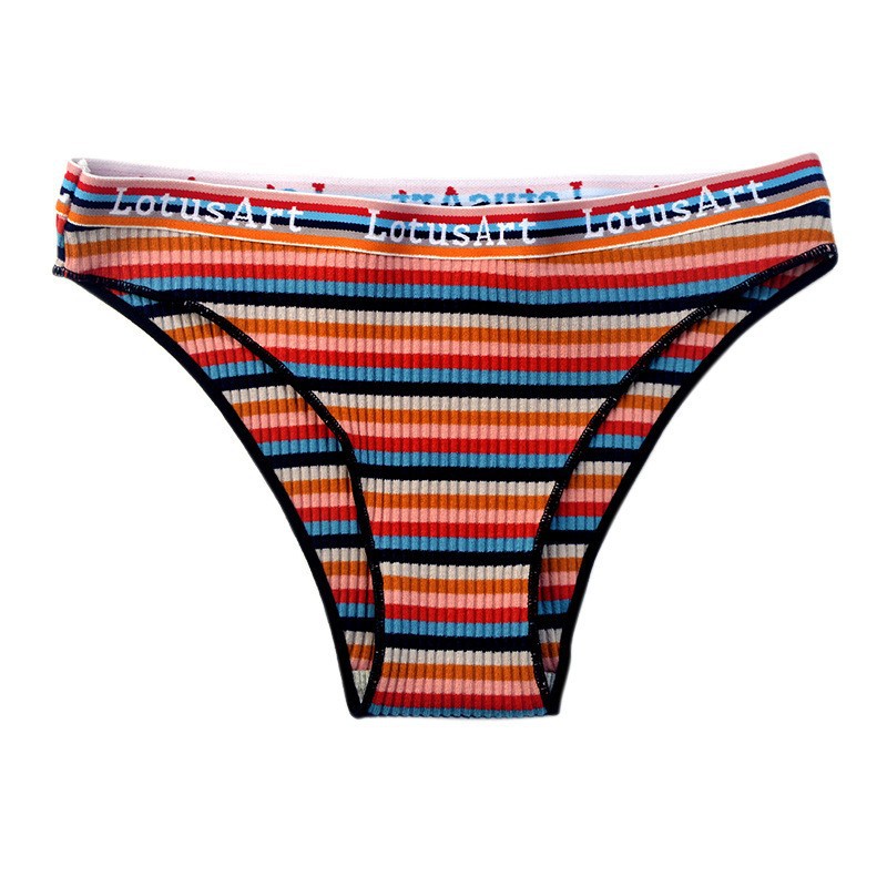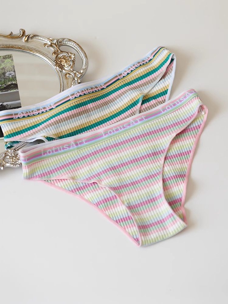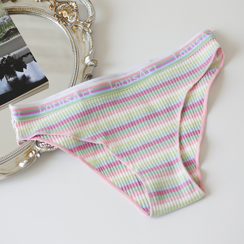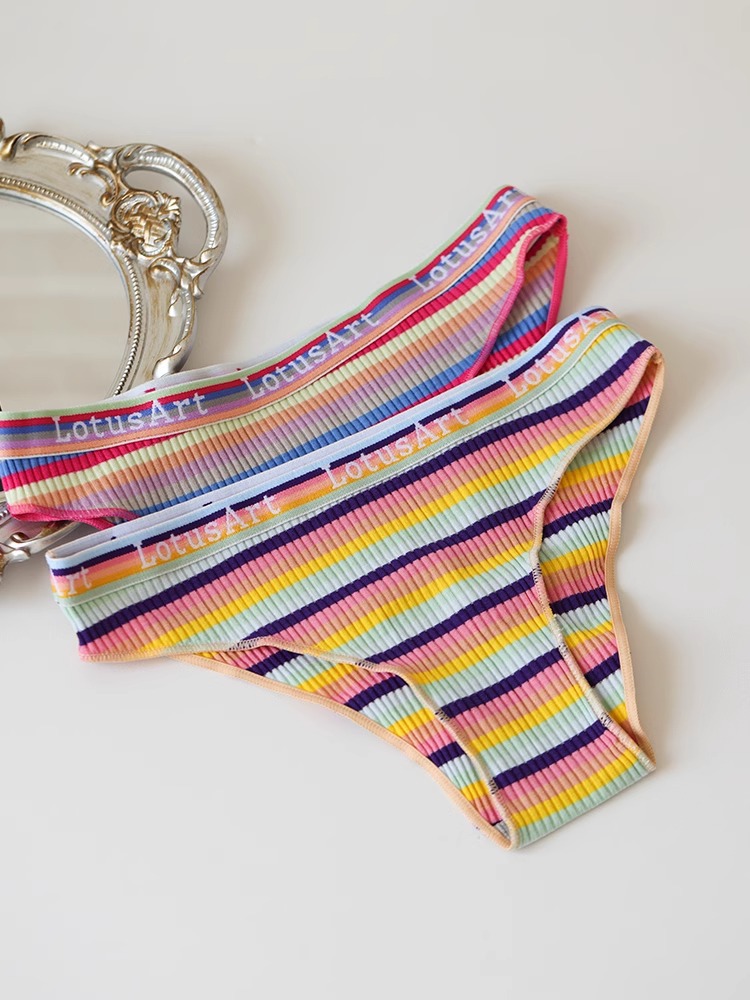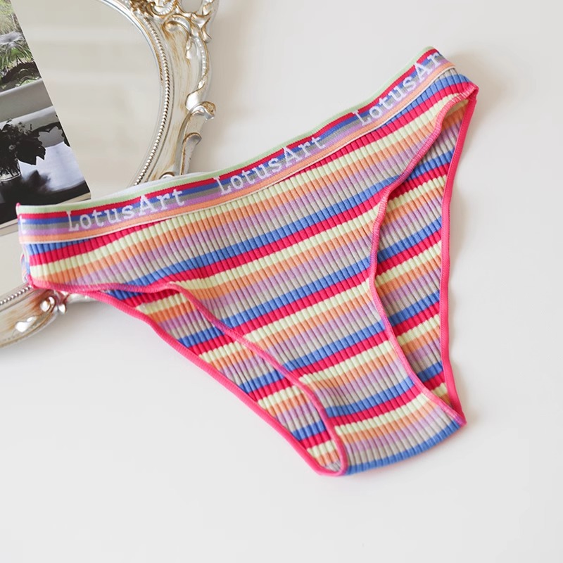 일본 크리에이티브 도파민 레인보우 스트라이프 속옷 여성용 코튼 미드 웨이스트 하프 랩 힙합 퓨어 하이 스플릿 브리프