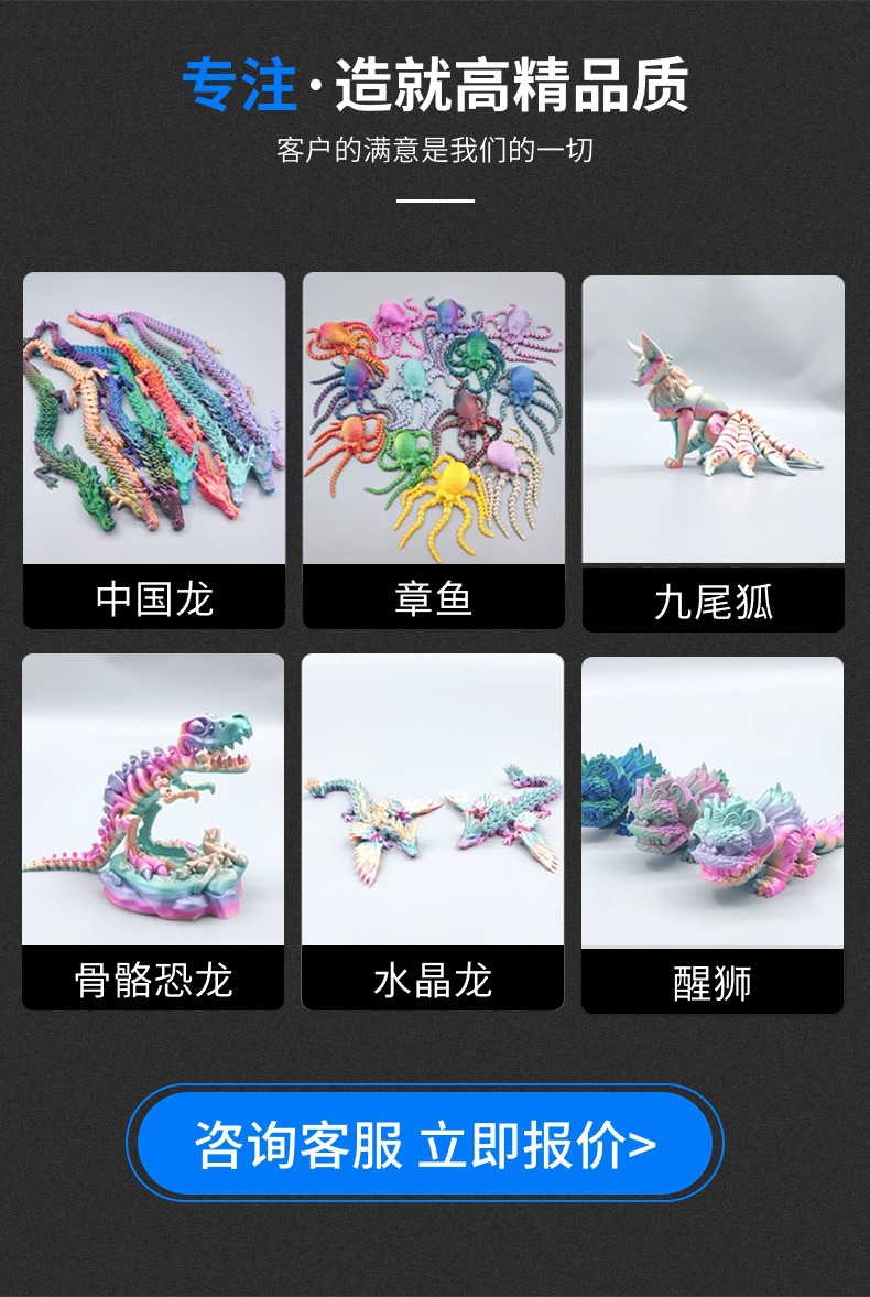 국경 3D 인쇄 중국 용 공예 조경 선물 온라인 인기있는 창조적 인 어린이 손으로 만든 장난감 도매