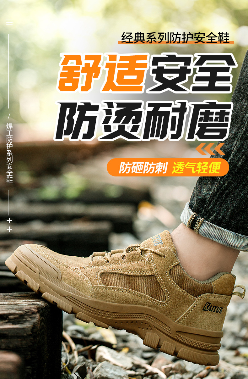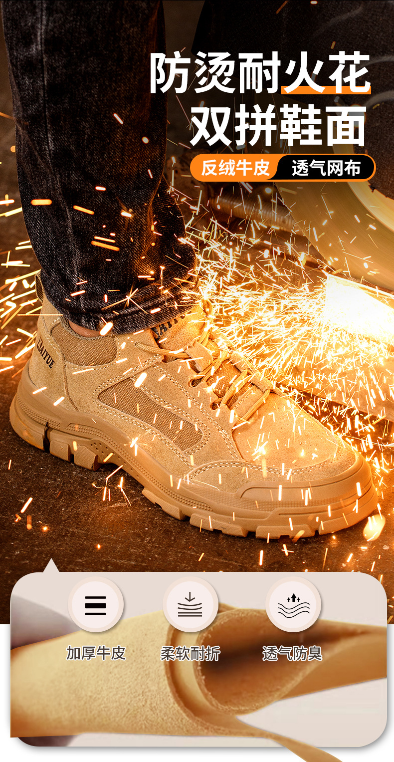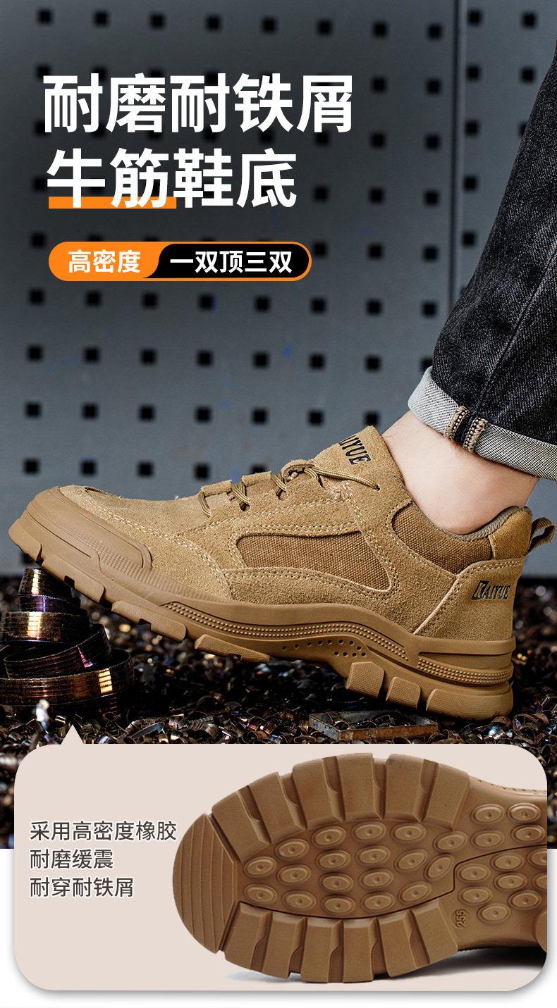 맞춤형 노동 보호 신발, 충격 방지 및 찌르기 방지 소가죽, 편안하고 내마모성, 안전 보호, 미끄럼 방지 작업 현장 신발의 국경 간 처리스토어 가기