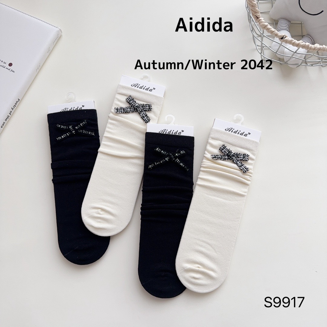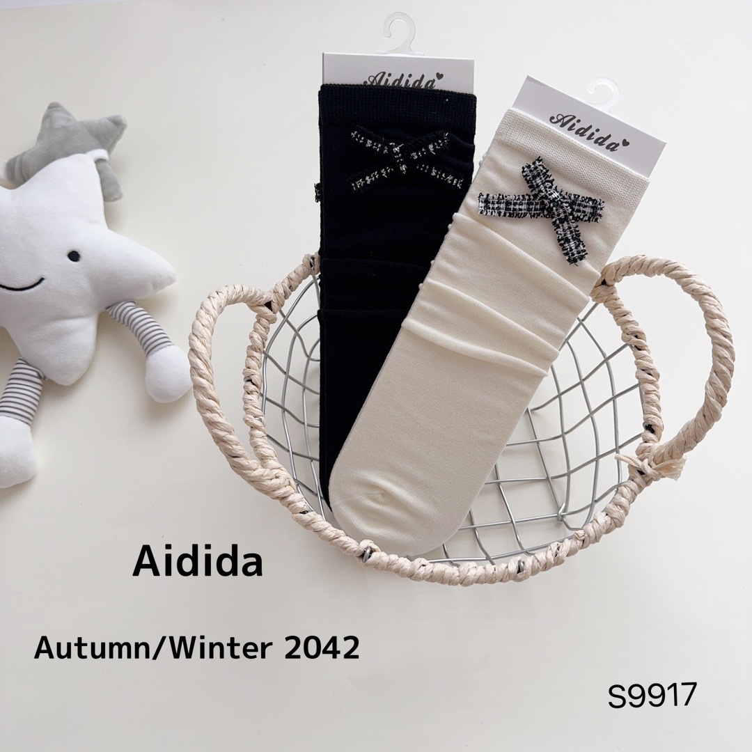사랑 Dida 어린이 양말 간단한 활 소녀 송아지 양말 Combed 면화 학생 스택 양말 가을과 겨울 새로운