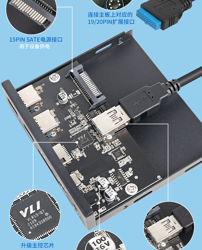USB3. 03.5inch 플로피 드라이브 슬롯 패널 19PIN to type-cSD/TFAudio 확장 도크 허브 멀티 인터페이스스토어 가기