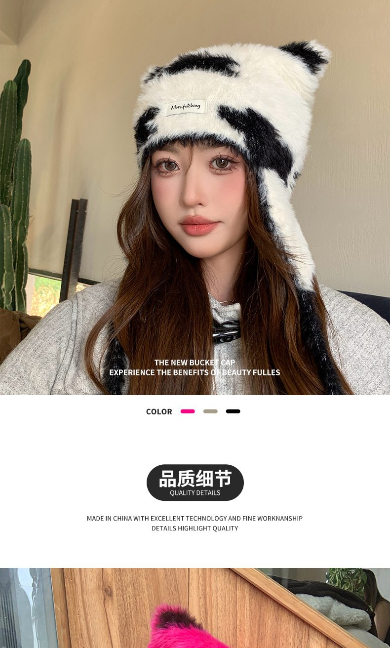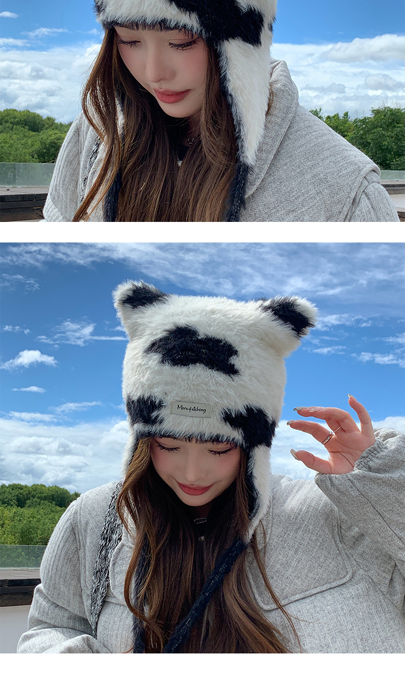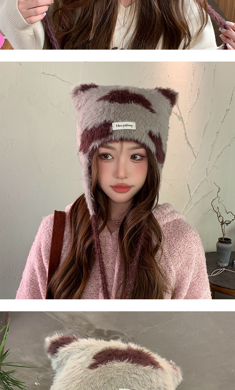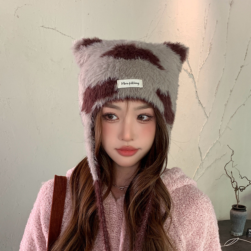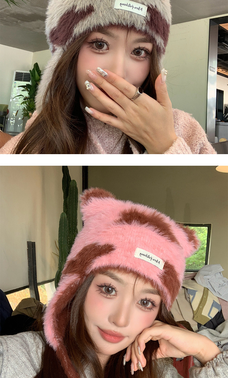 귀여운 고양이 귀 하이라이트 구름 니트 모자 겨울 새로운 따뜻한 스트랩 울 귀 보호 모자 올 매치 작은 얼굴스토어 가기