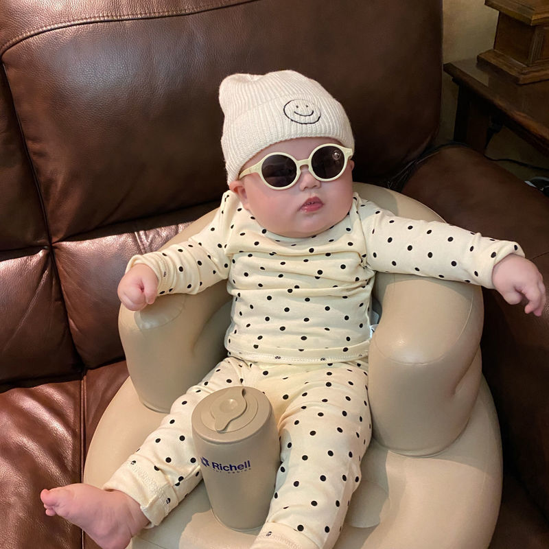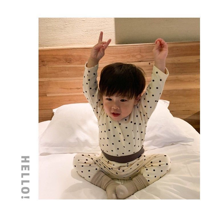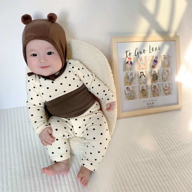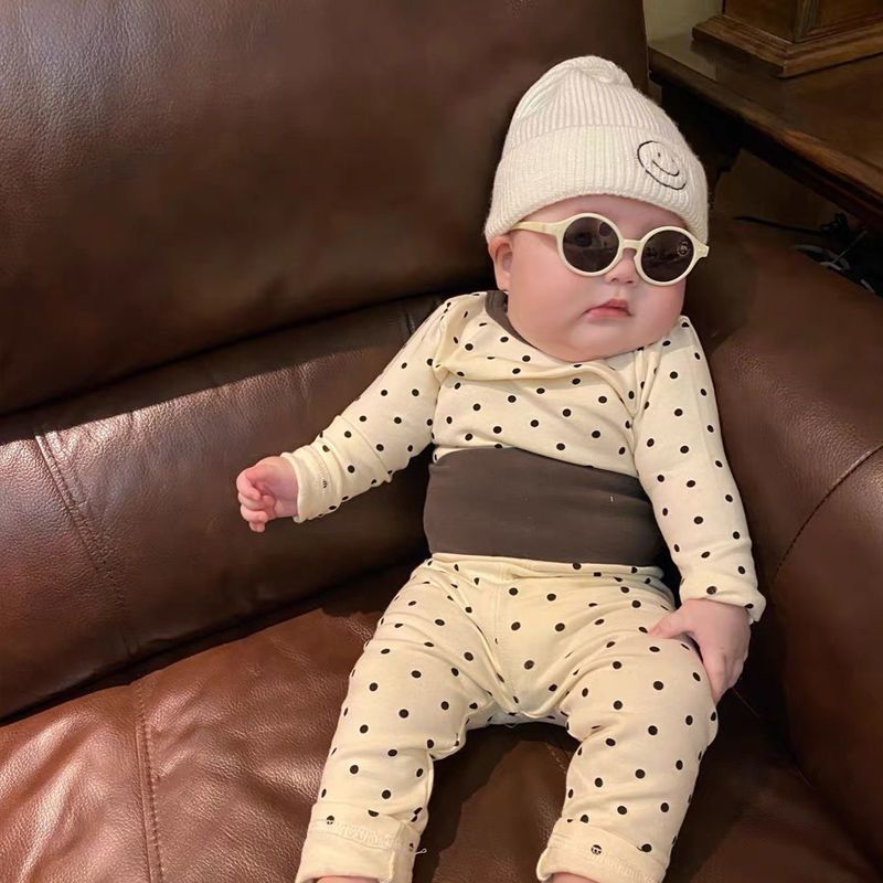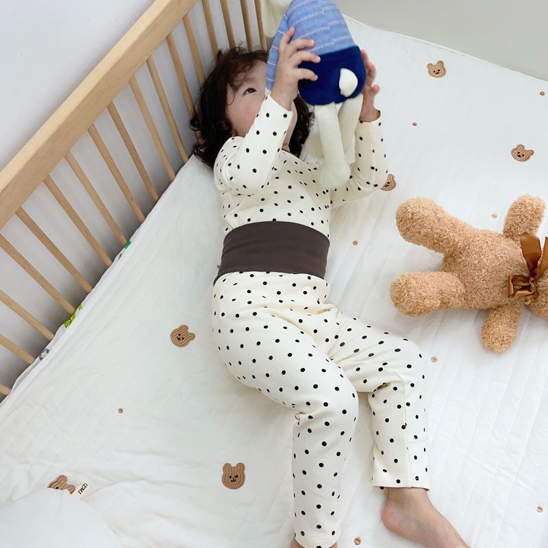 어린이 가을 옷과 바지 카테고리 아기 세트 폴카 도트 라인 옷 아기 홈 옷을 위해 속옷을 보호하는 면 분할 배꼽스토어 가기