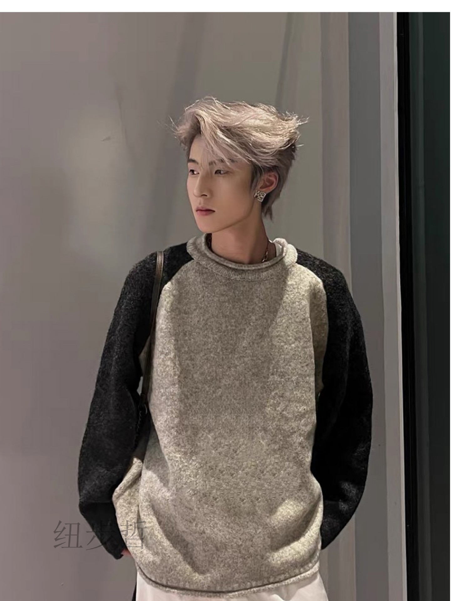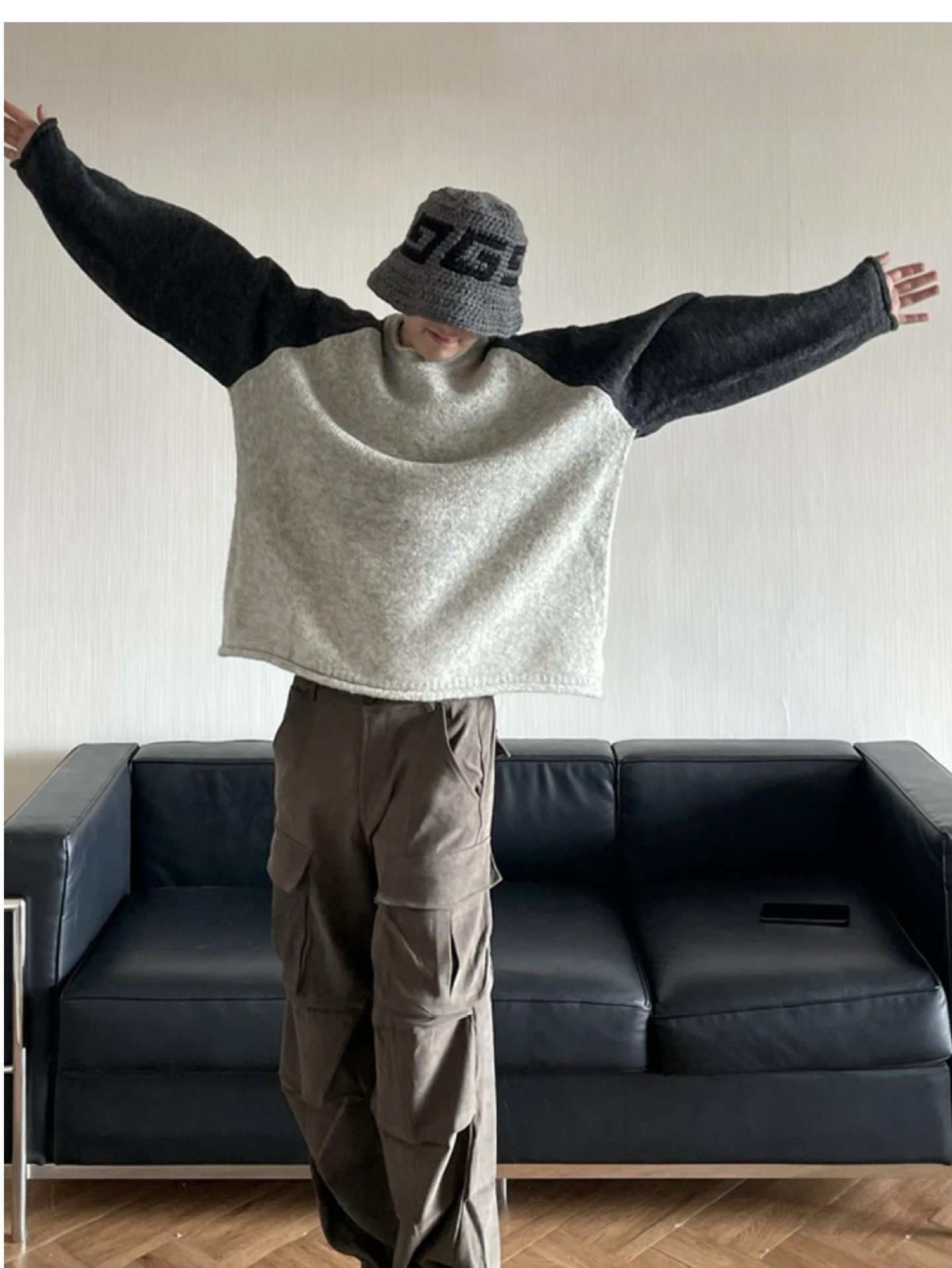 가을과 겨울 새로운 무거운 게으른 스타일 한국 스타일 남성과 여성을위한 두꺼운 스웨터 트렌디 브랜드 루즈 라글란 슬리브 컬러 매칭 스웨터 트렌디스토어 가기