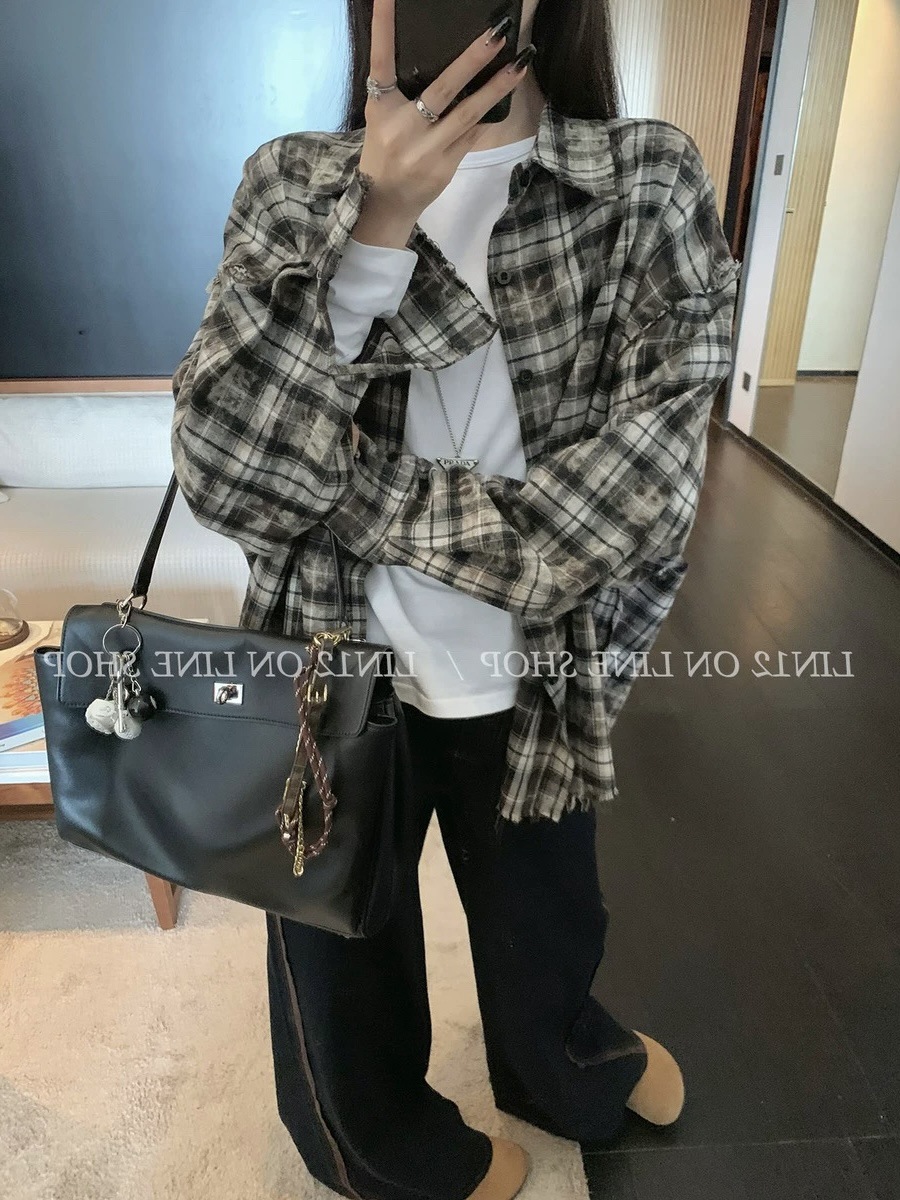 긴팔 다용도 루즈핏 기모 체크 셔츠 겨울 초가을 프린지 여성복 G922
