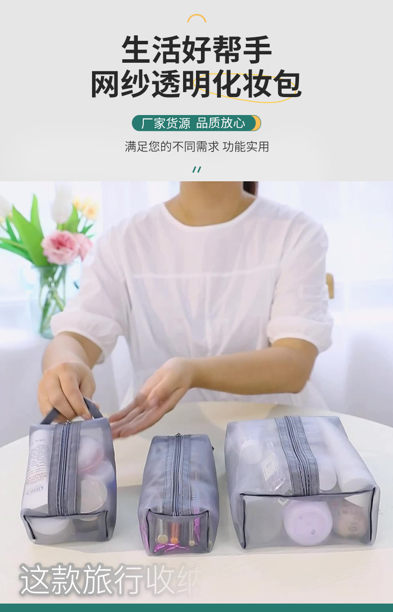 휴대용 메쉬 보관 가방, 간단한 연필 가방, 브러시 가방, 대용량 휴대용 메쉬 화장품 가방 보관 가방 도매스토어 가기