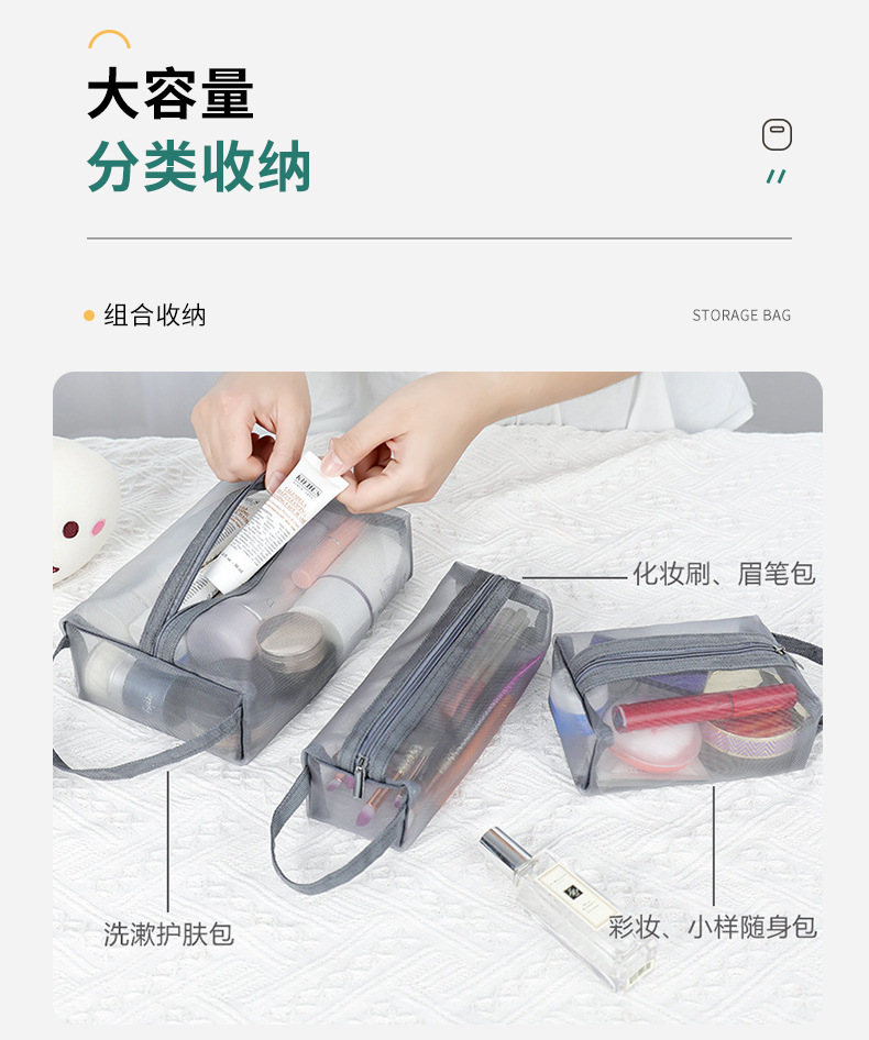 휴대용 메쉬 보관 가방, 간단한 연필 가방, 브러시 가방, 대용량 휴대용 메쉬 화장품 가방 보관 가방 도매