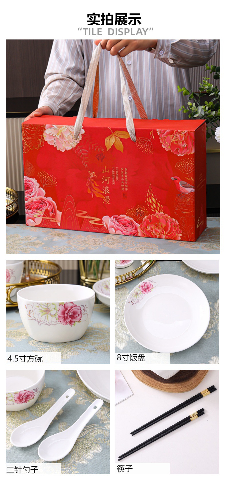 결혼식 축하 선물 세라믹 식기 세트 웨딩 선물 그릇 젓가락 선물 상자 세트 식기 활동 식기 선물