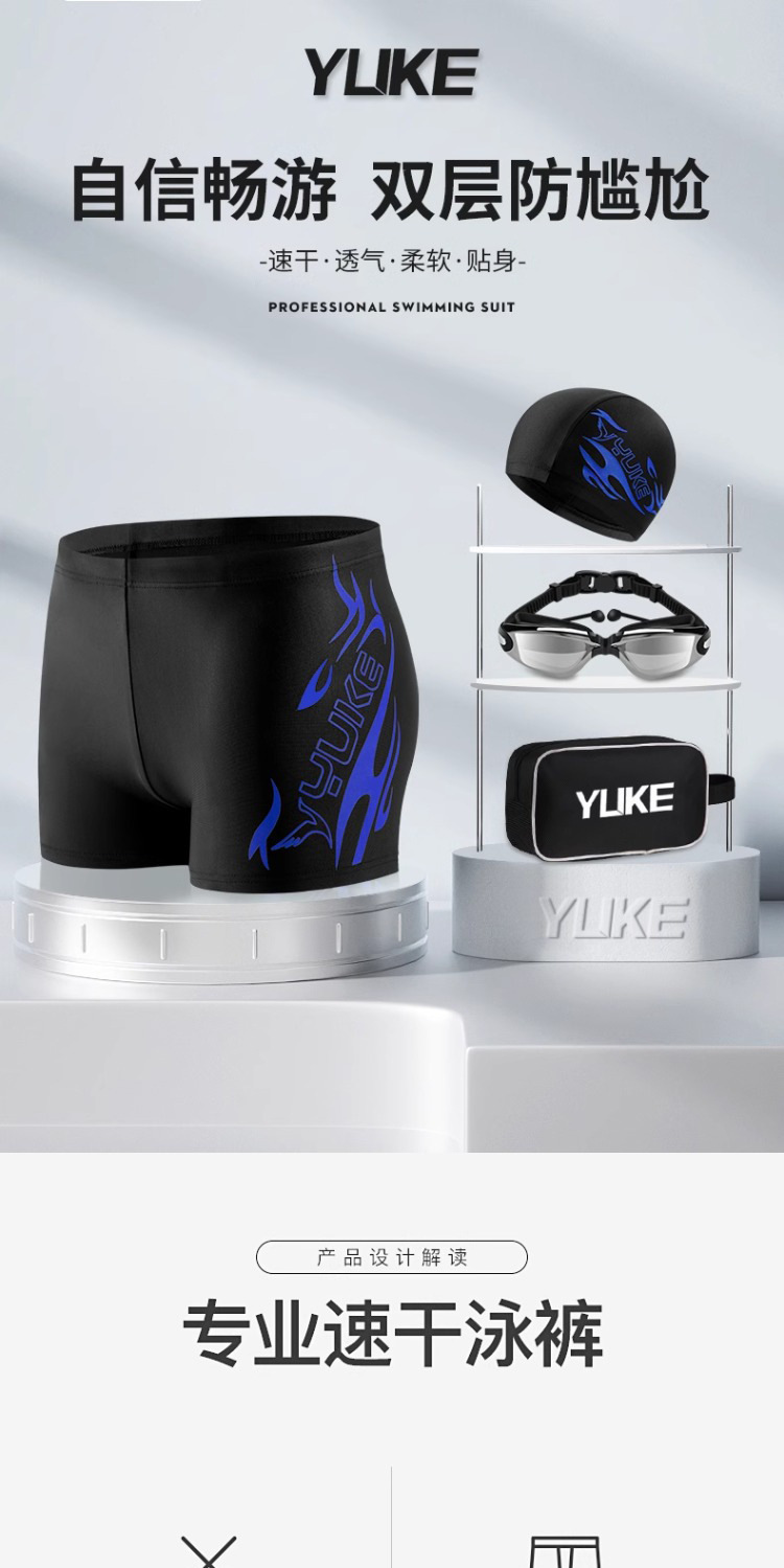 성인 수영 트렁크 남성 복서 플러스 사이즈 수영 트렁크 남성 패션 온천 고글 수영 모자 세트 전문 수영 장비스토어 가기