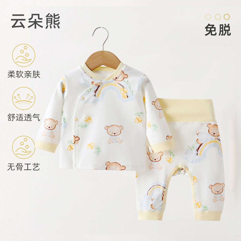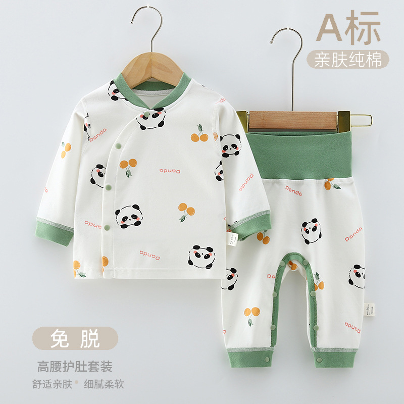 아기의 순면 속옷 세트 높은 허리 배꼽 보호 가을 옷과 바지 가을 옷 아기의 분할 부분 세트 가을과 겨울 얇은 면화