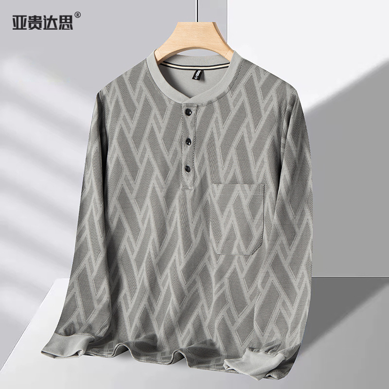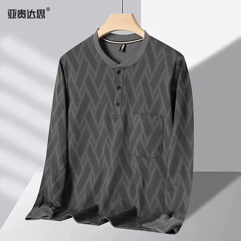 코튼 아빠의 가을 2024 봄과 가을 새로운 중년 긴팔 티셔츠 가을 옷 남성면 노인 셔츠스토어 가기