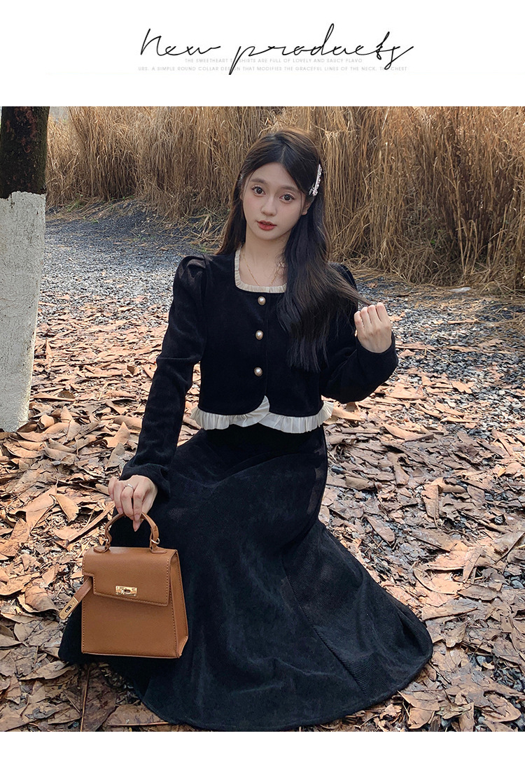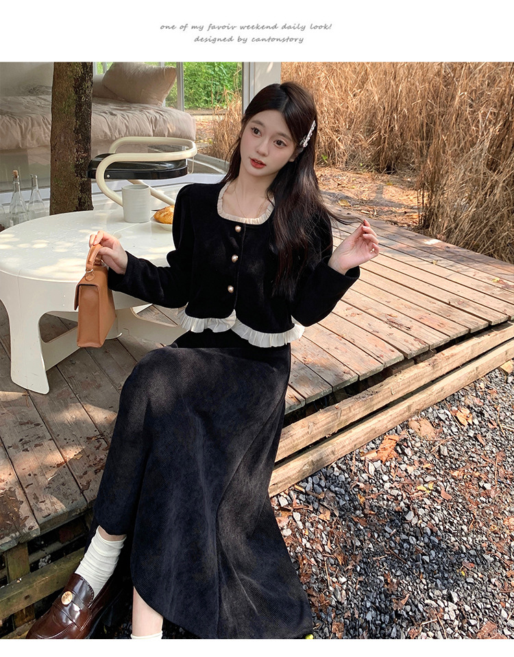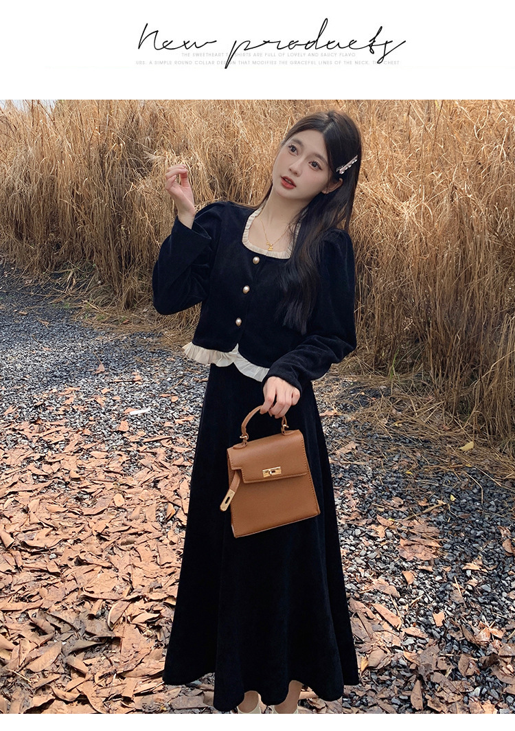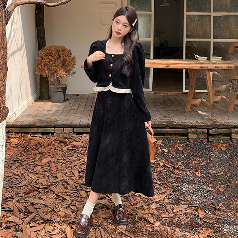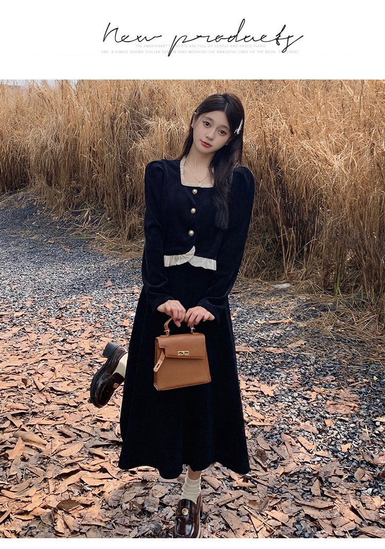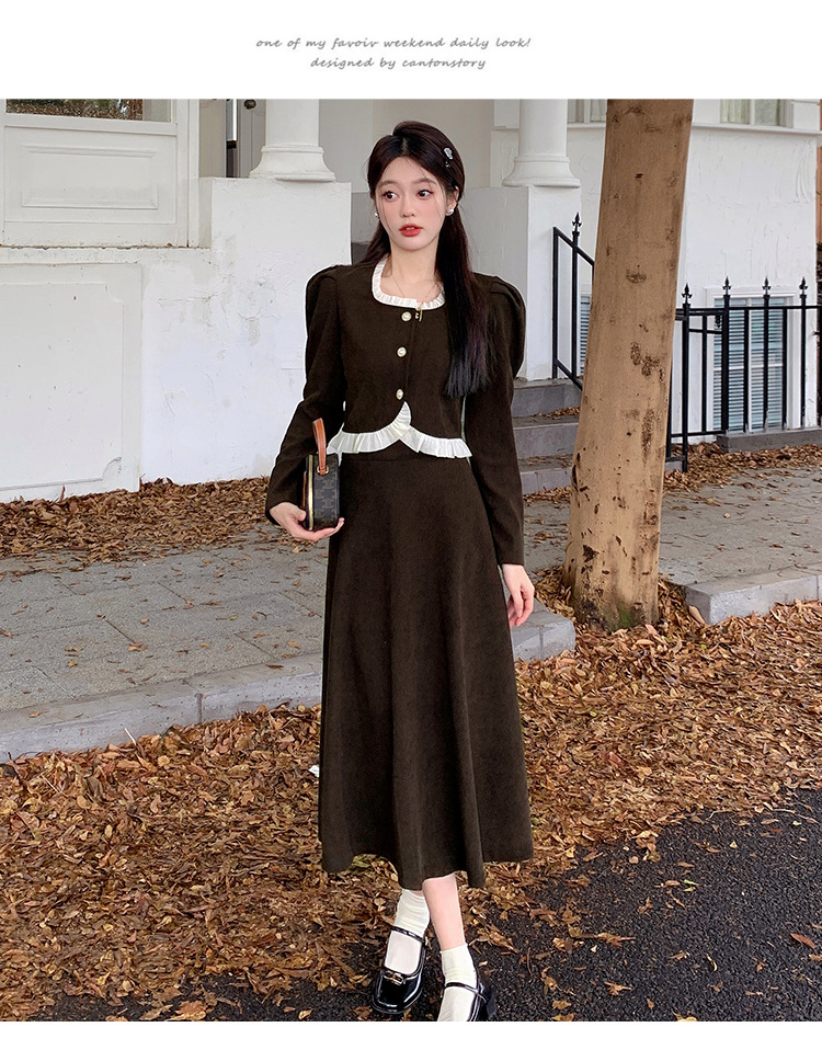 Hepburn의 Little Fragrant Style 원피스 어린이의 2024 새로운 가을 및 겨울 착용과 소금 부서 라이트 성숙한 대학 세트스토어 가기