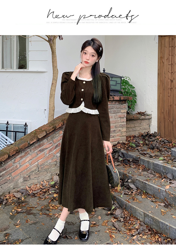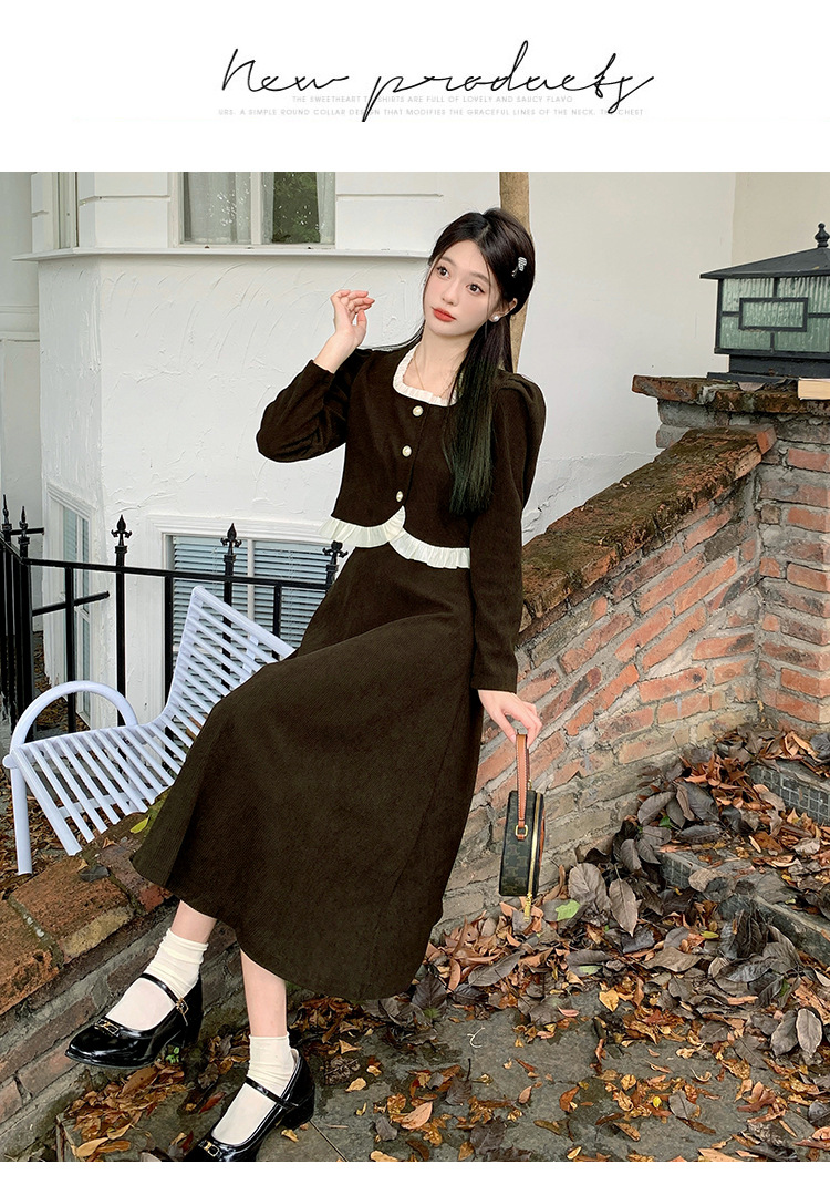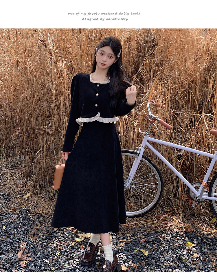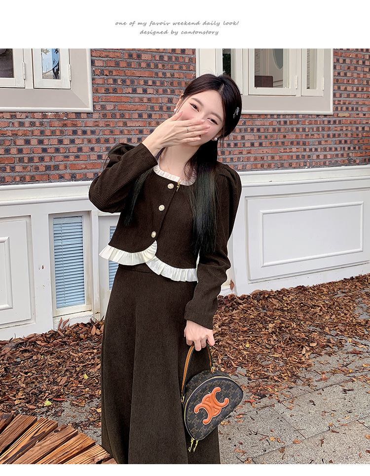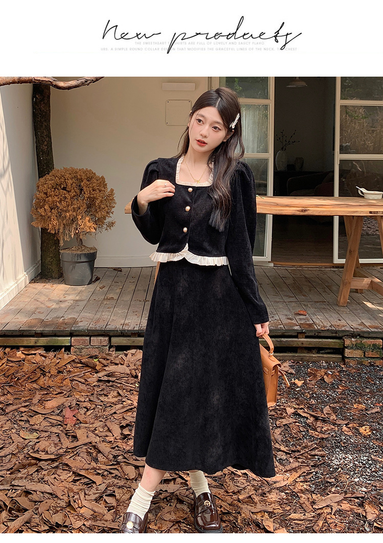 Hepburn의 Little Fragrant Style 원피스 어린이의 2024 새로운 가을 및 겨울 착용과 소금 부서 라이트 성숙한 대학 세트스토어 가기
