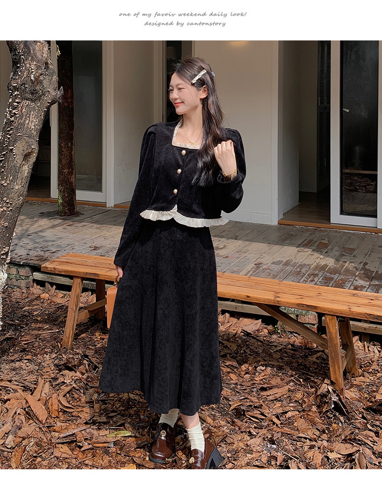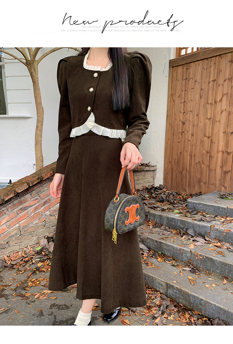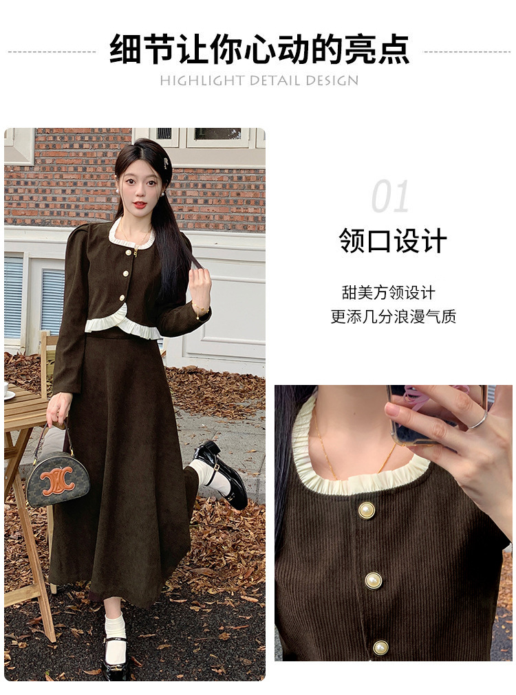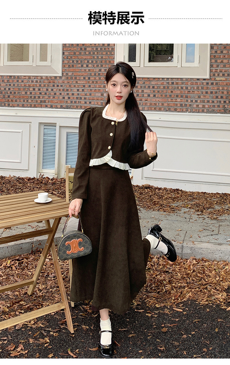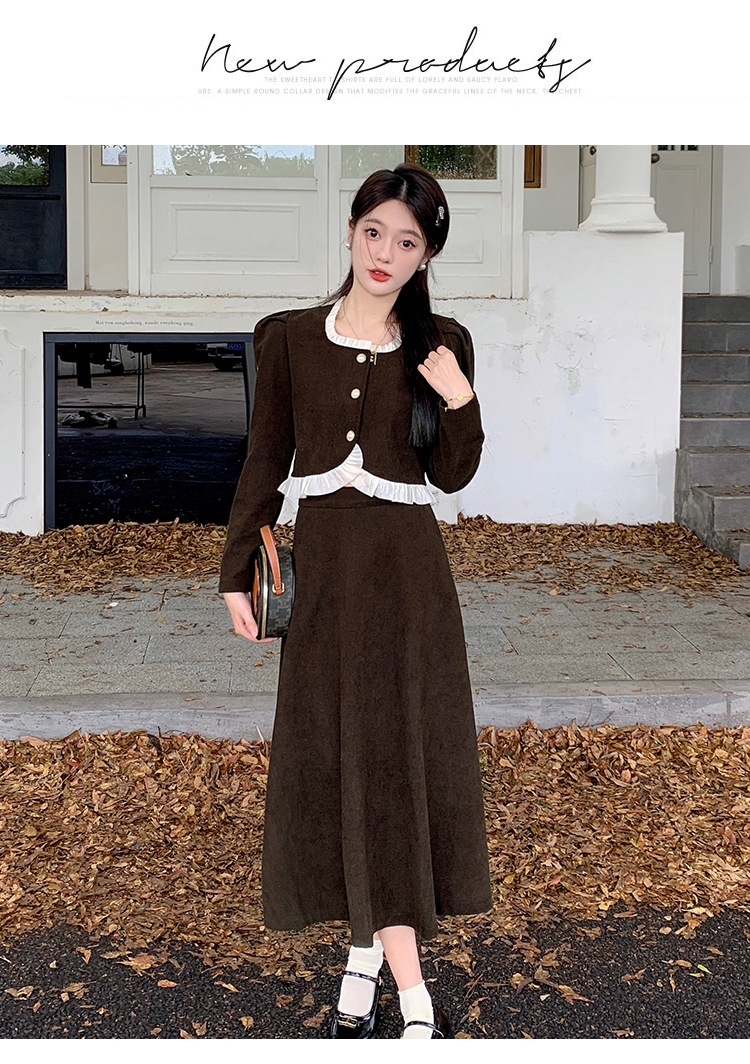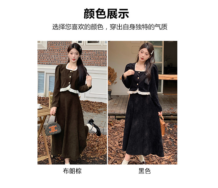 Hepburn의 Little Fragrant Style 원피스 어린이의 2024 새로운 가을 및 겨울 착용과 소금 부서 라이트 성숙한 대학 세트스토어 가기