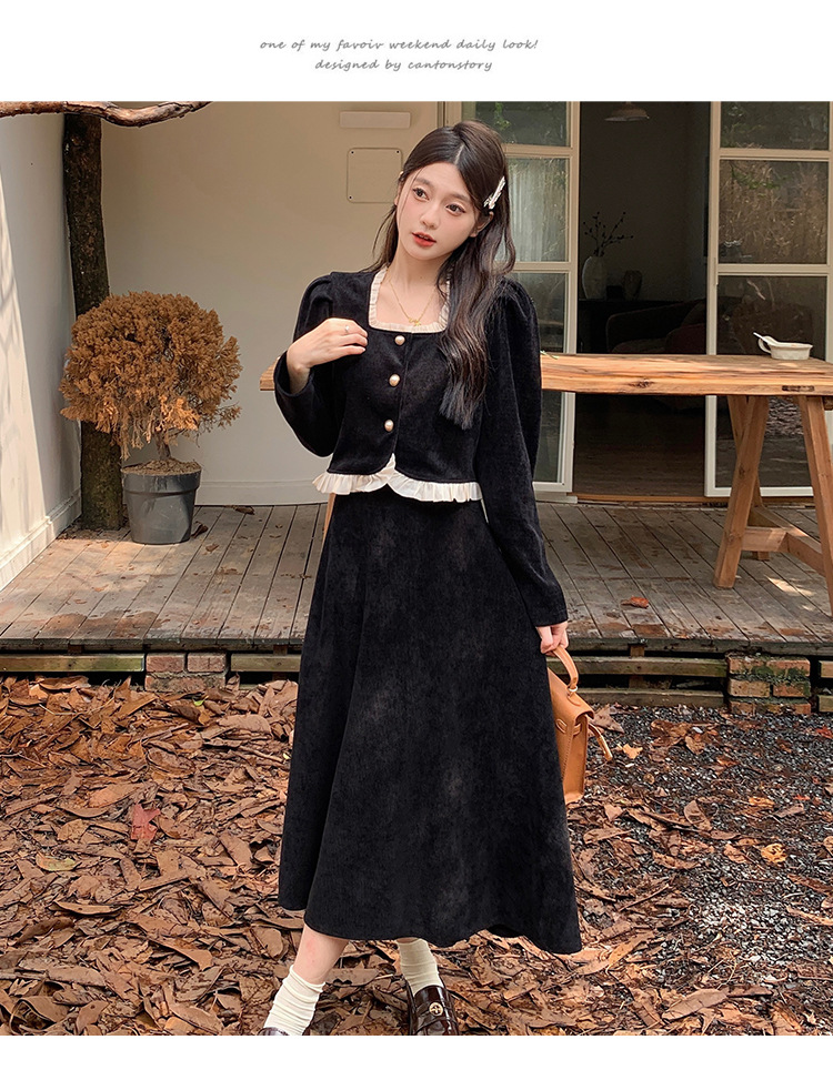 Hepburn의 Little Fragrant Style 원피스 어린이의 2024 새로운 가을 및 겨울 착용과 소금 부서 라이트 성숙한 대학 세트