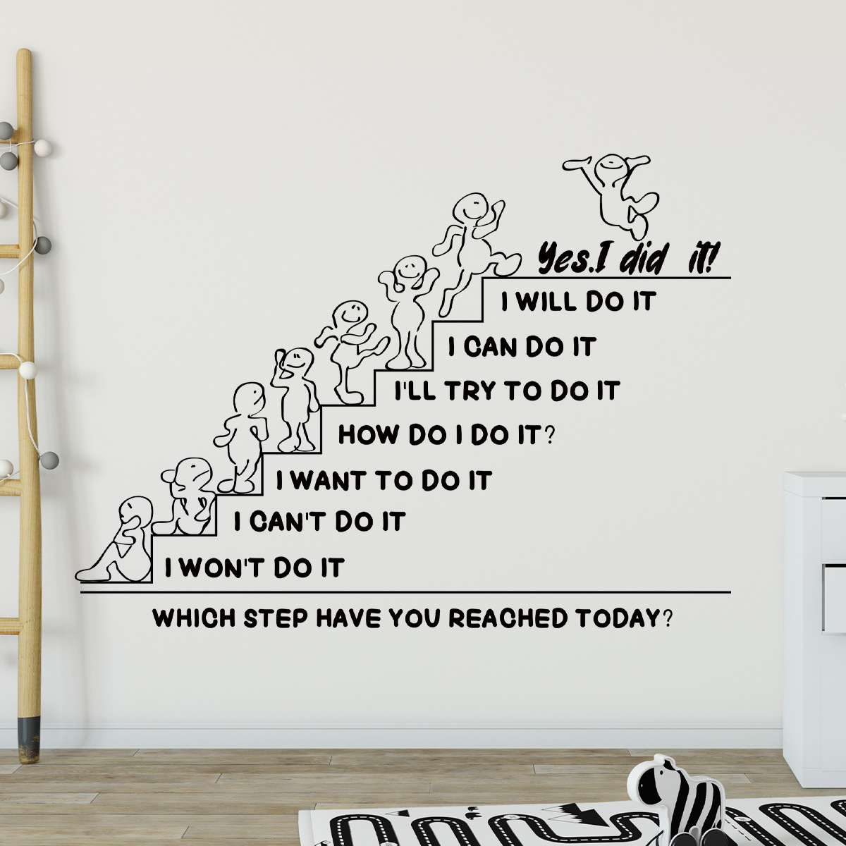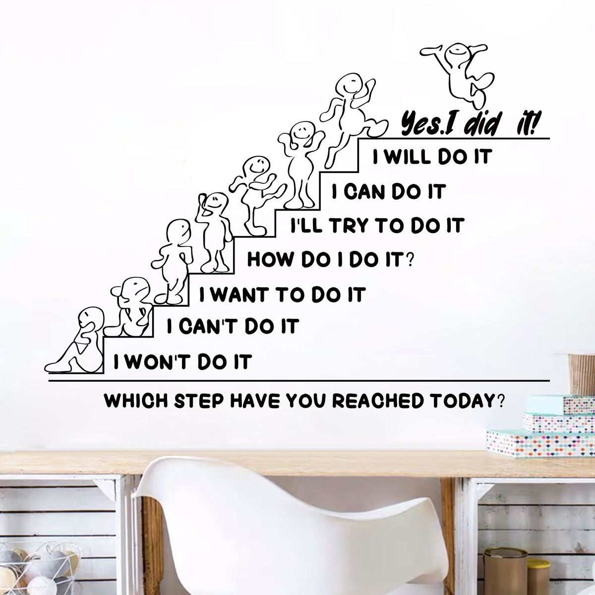 ZN0851H 영감을 주는 영어 사다리 문구 자체 접착 벽 스티커 간단한 스타일 방 배경 벽 장식 스티커스토어 가기