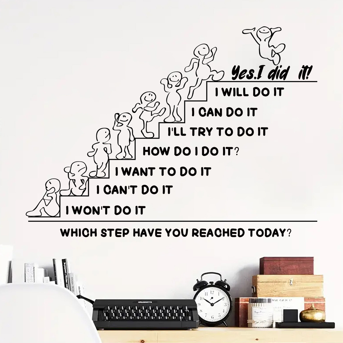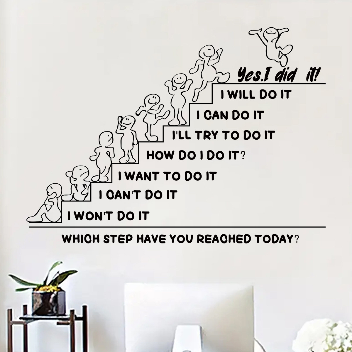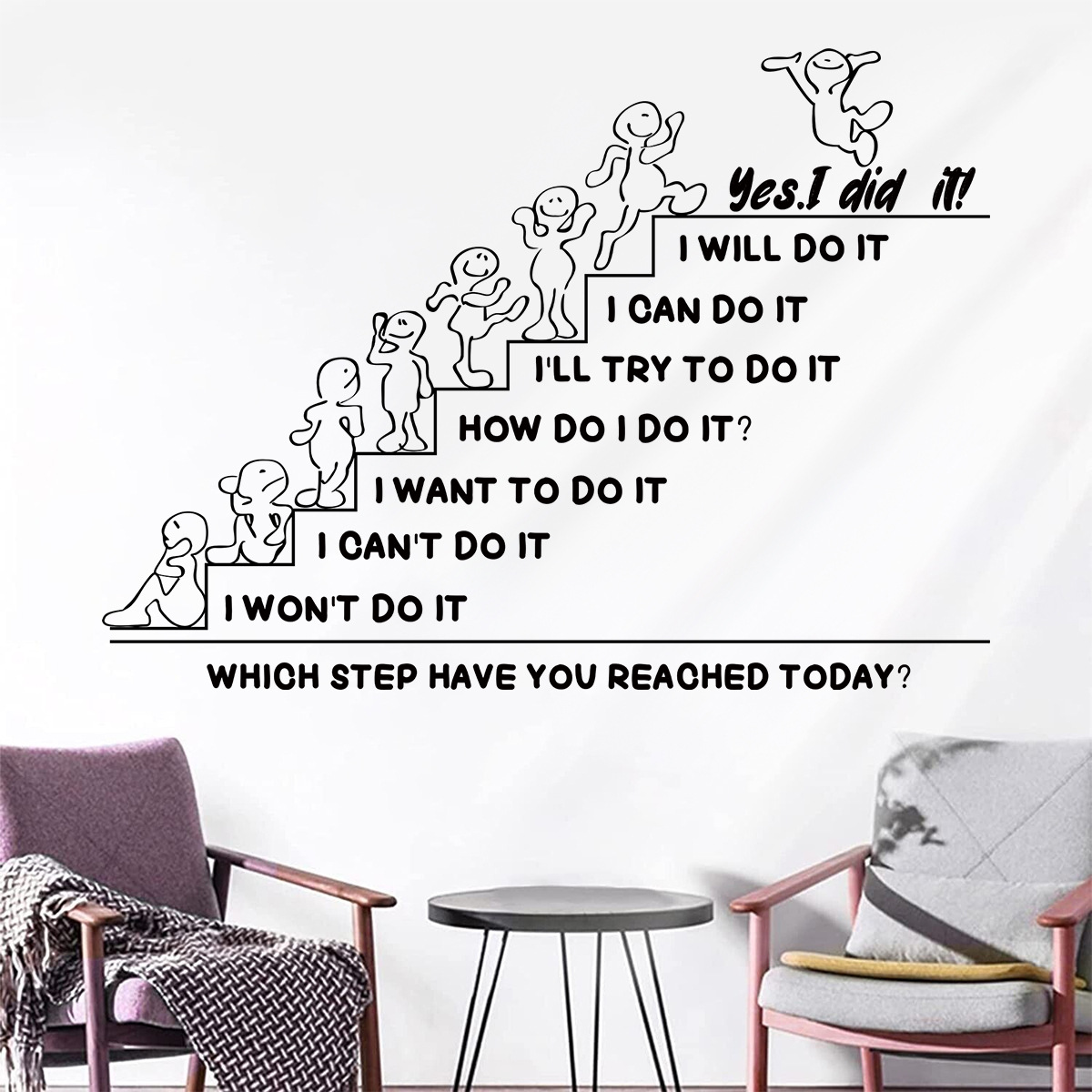 ZN0851H 영감을 주는 영어 사다리 문구 자체 접착 벽 스티커 간단한 스타일 방 배경 벽 장식 스티커